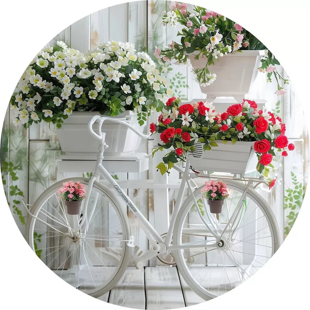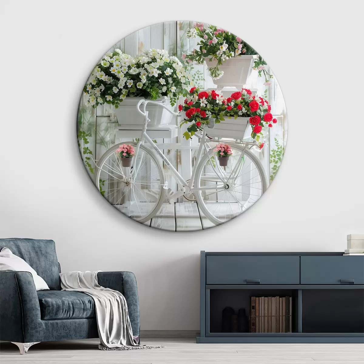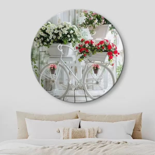 Apaļas gleznas Velosipēdu un ziedu grozs Provansas stilā r39242