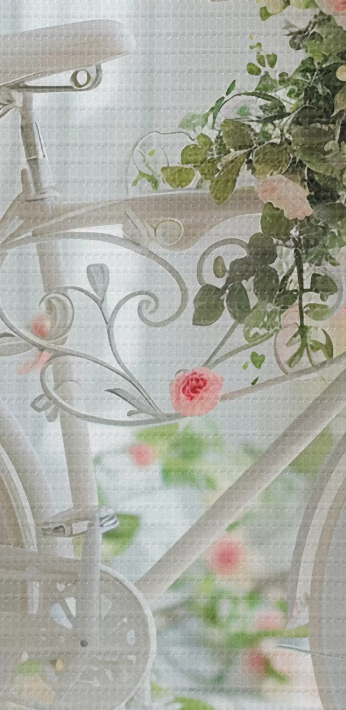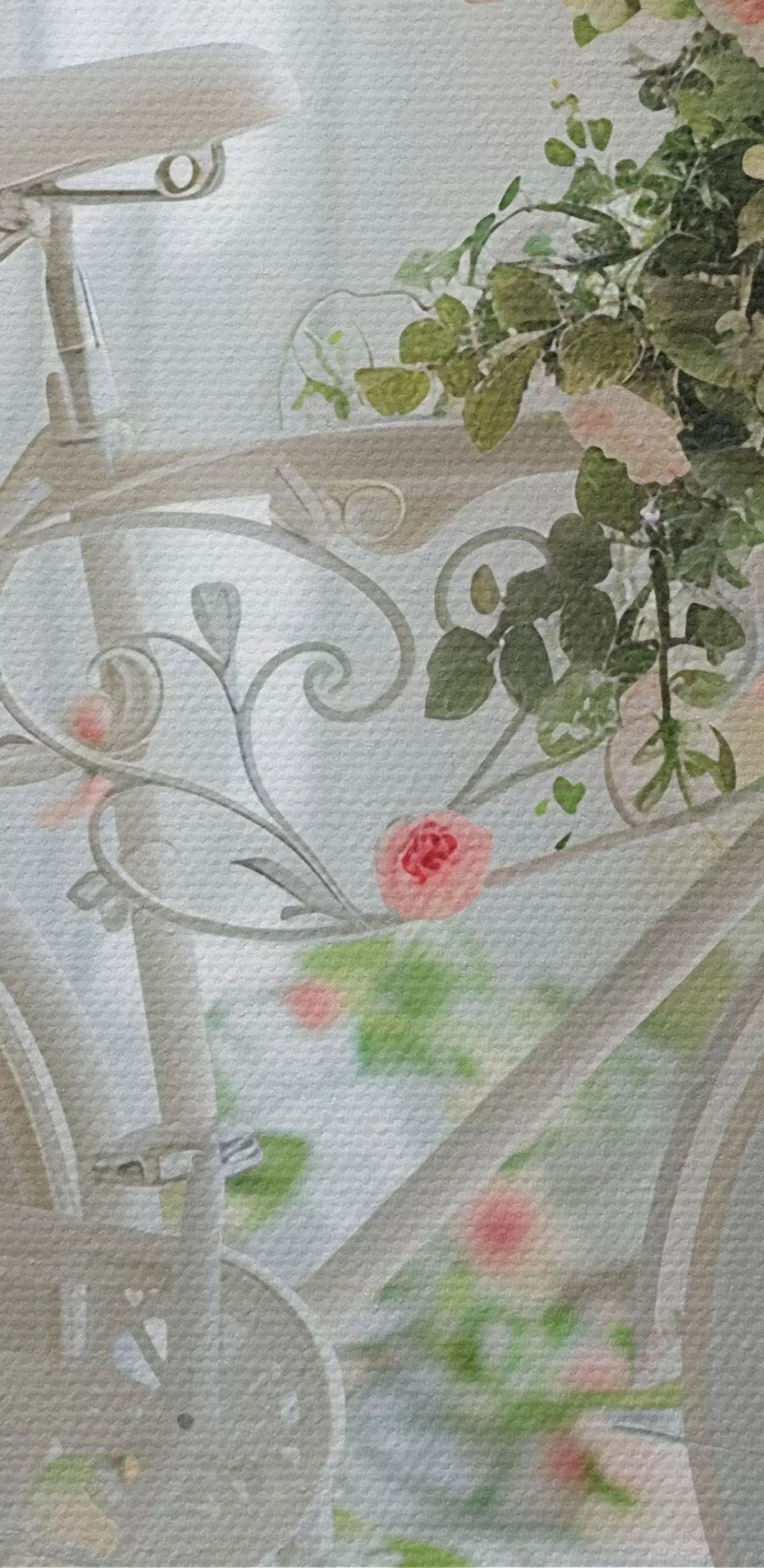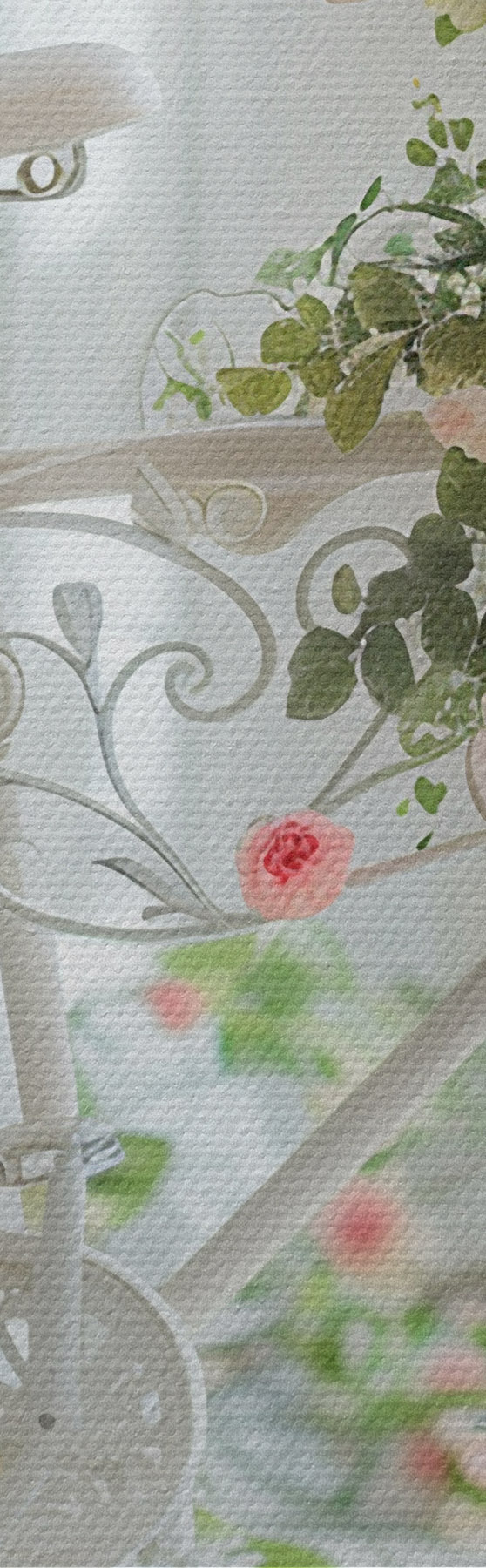 Attēls Balts velosipēds ar ziedu grozu Provansas stilā Nr r39243