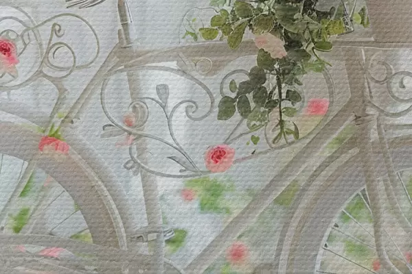 Attēls Balts velosipēds ar ziedu grozu Provansas stilā Nr r39243