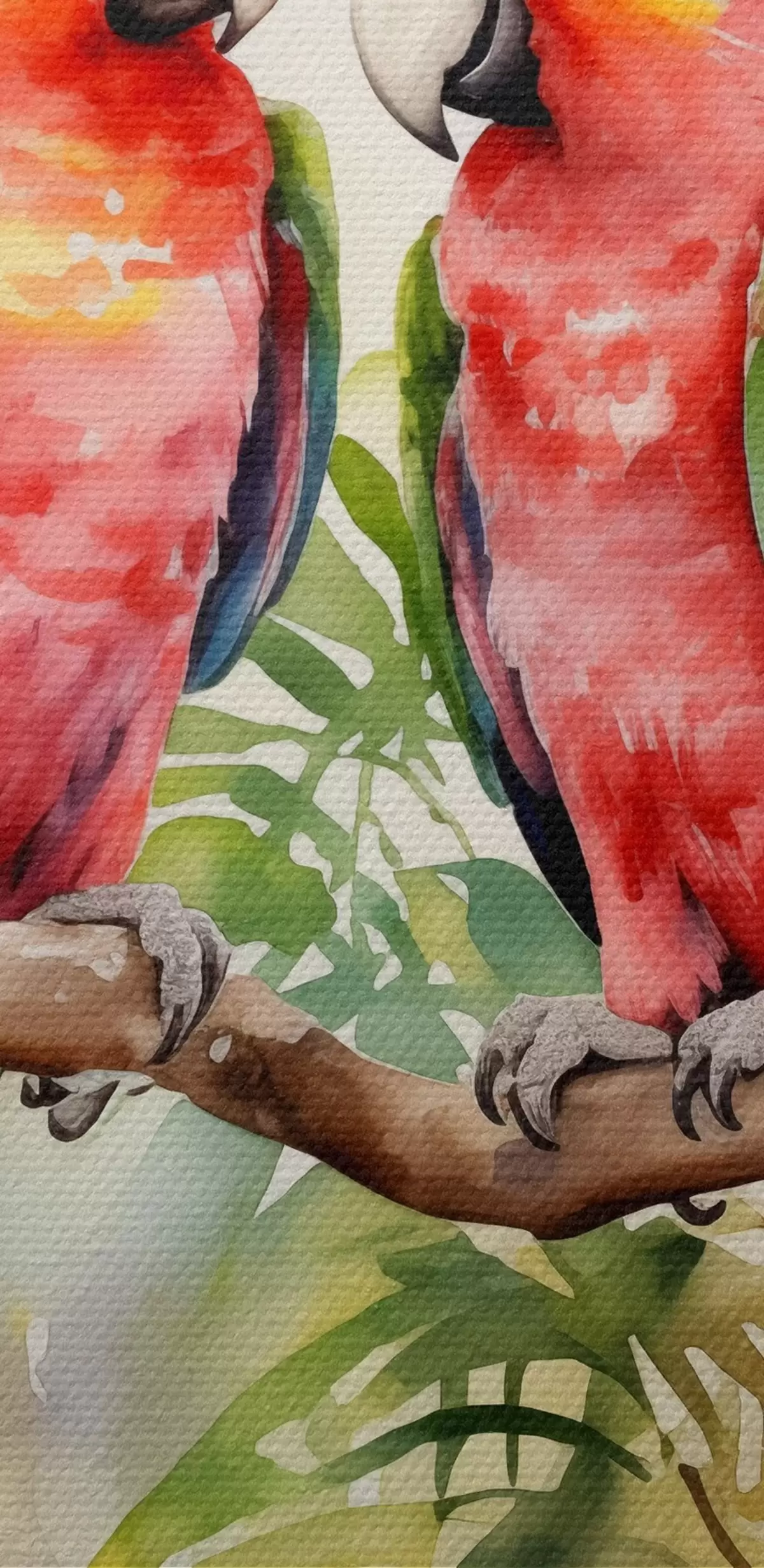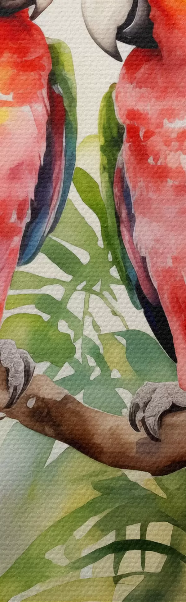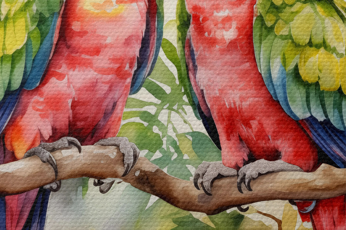 Attēls Divi spilgti ara papagaiļi sēž uz viena zara akvarelis Nr r39333