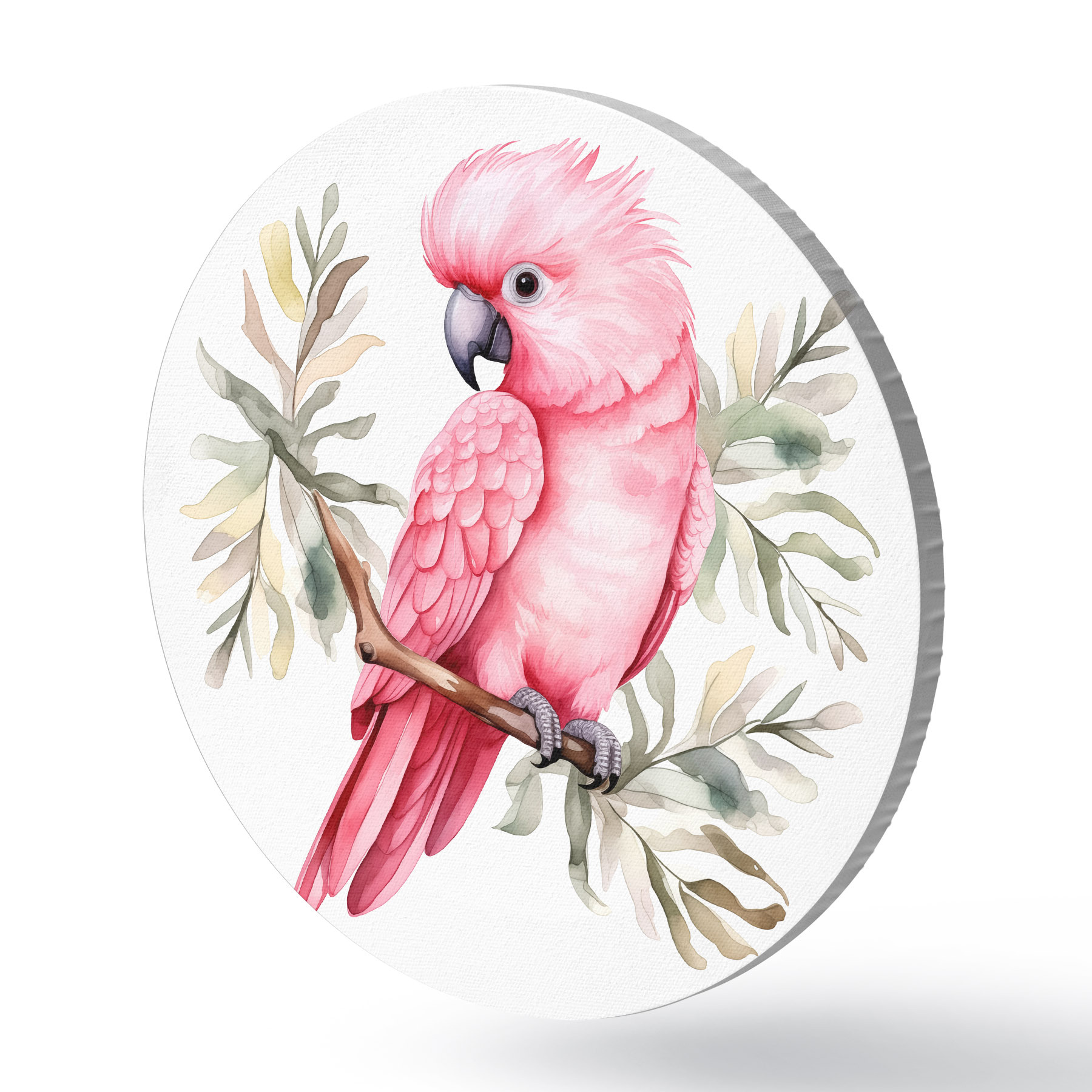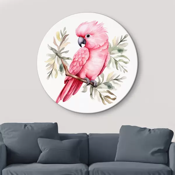 Apaļas gleznas Rozā kakadū papagailis sēž uz zara, akvarelis r39334