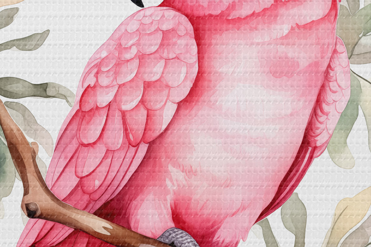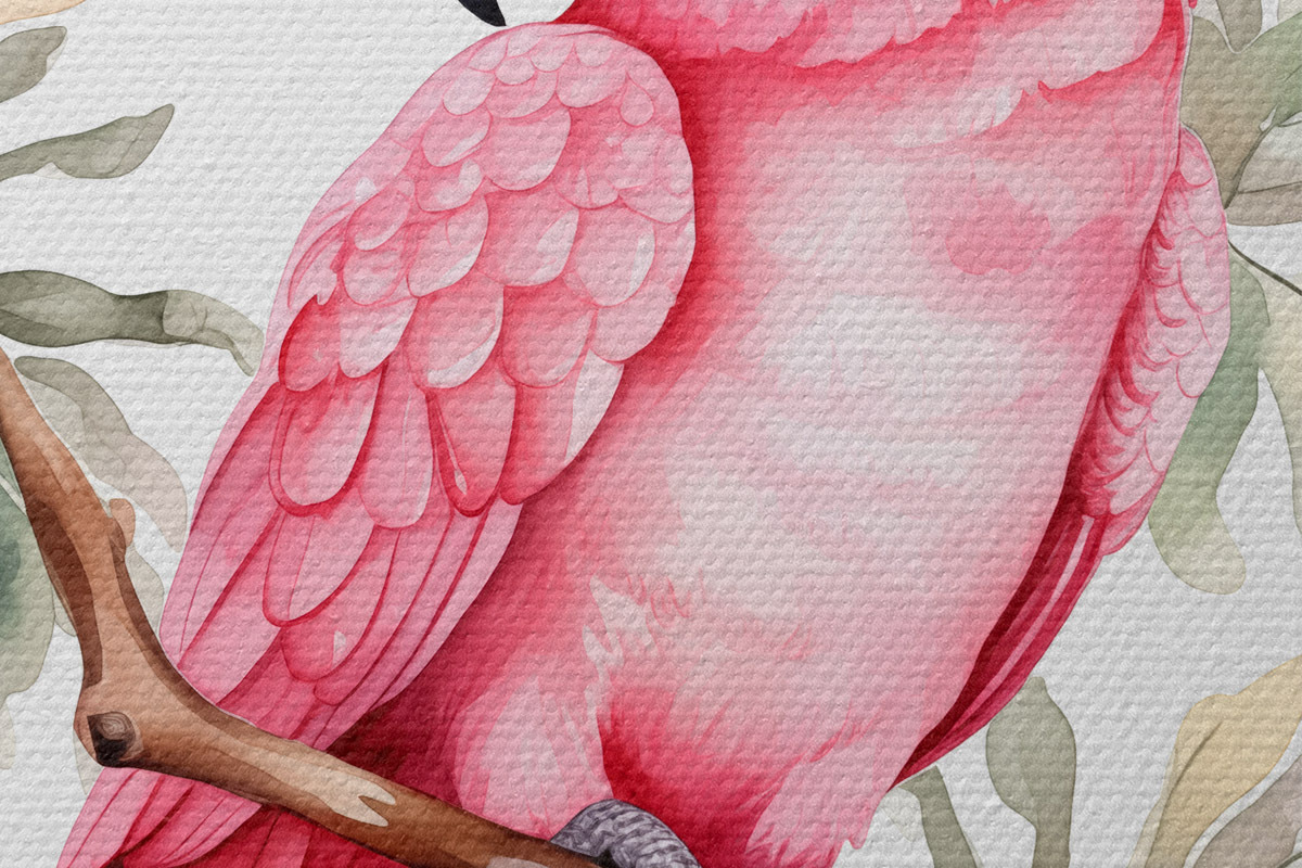 Attēls Rozā kakadū papagailis sēž uz zara, akvarelis Nr r39334