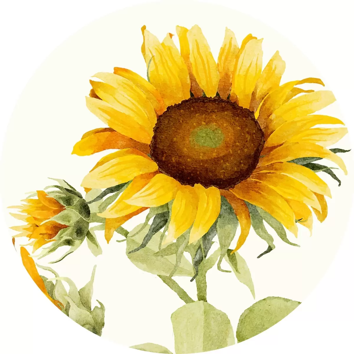 Apaļas gleznas Spilgtas akvareļkrāsas saulespuķes r39341