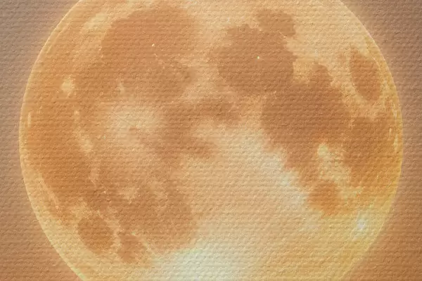 Apaļas gleznas Liels, spožs pilnmēness, kas saulrietā paceļas pār mierīgu, atstarojošu okeānu r39403