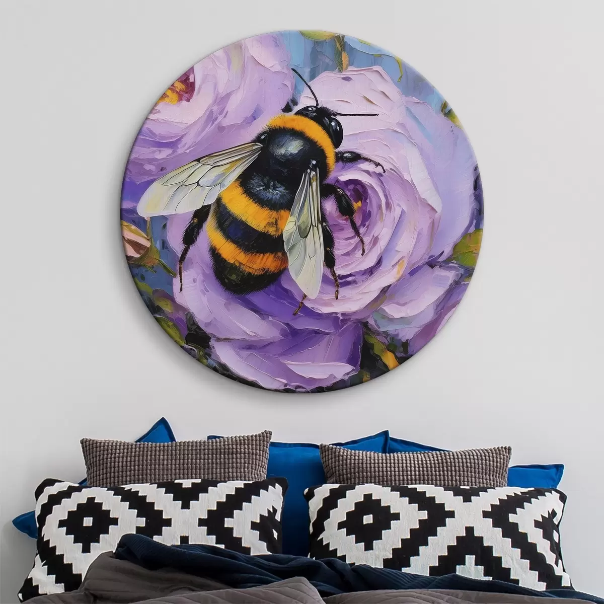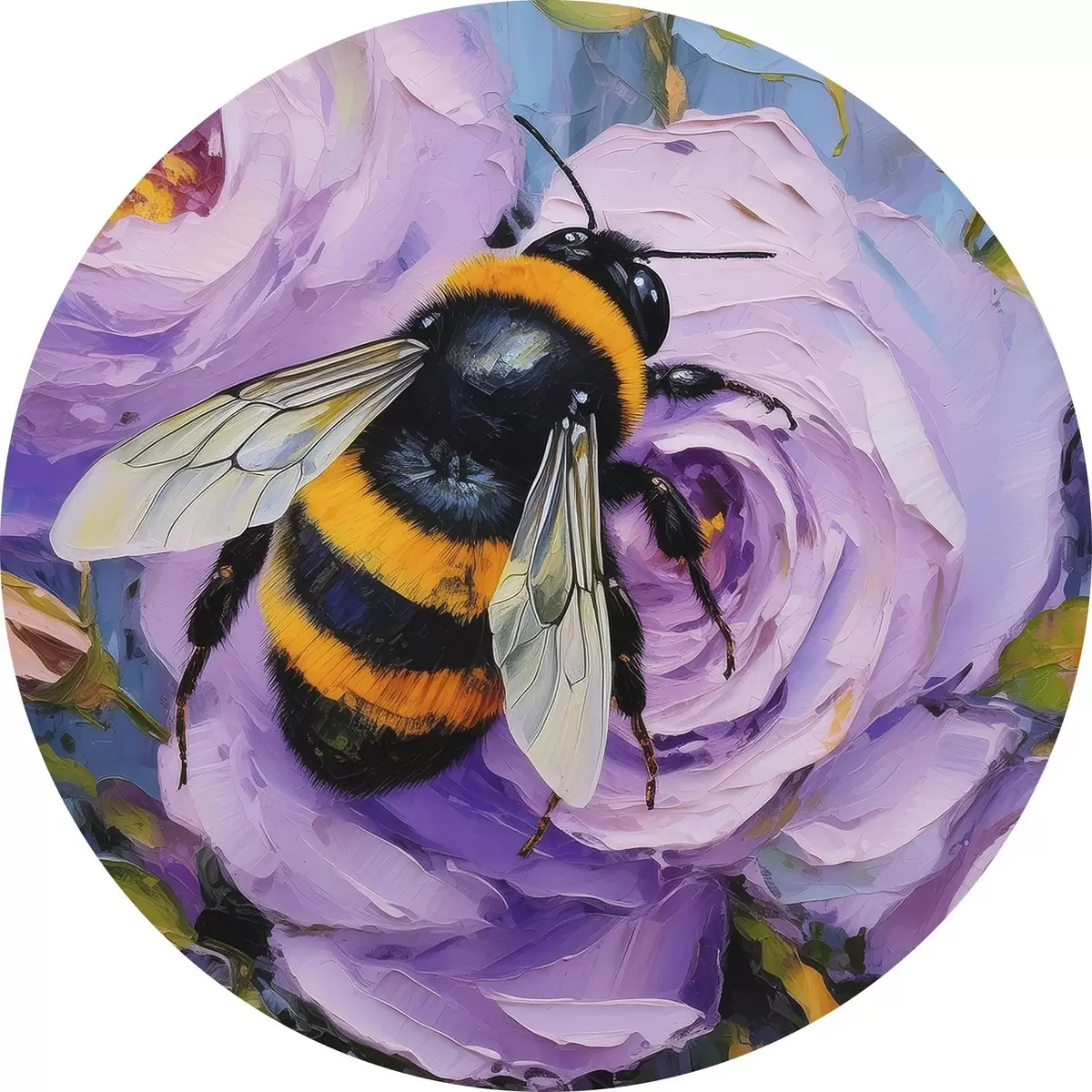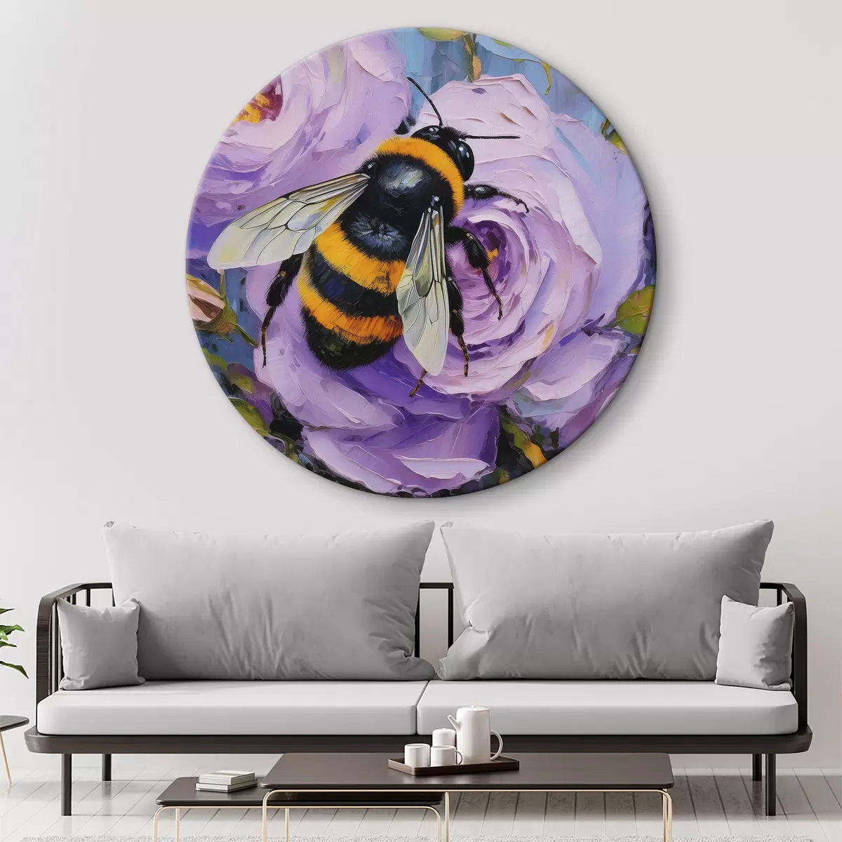Apaļas gleznas Bite uz rozā peonijām, vasaras ziedi, eļļas glezna, spilgti otas triepieni r39410