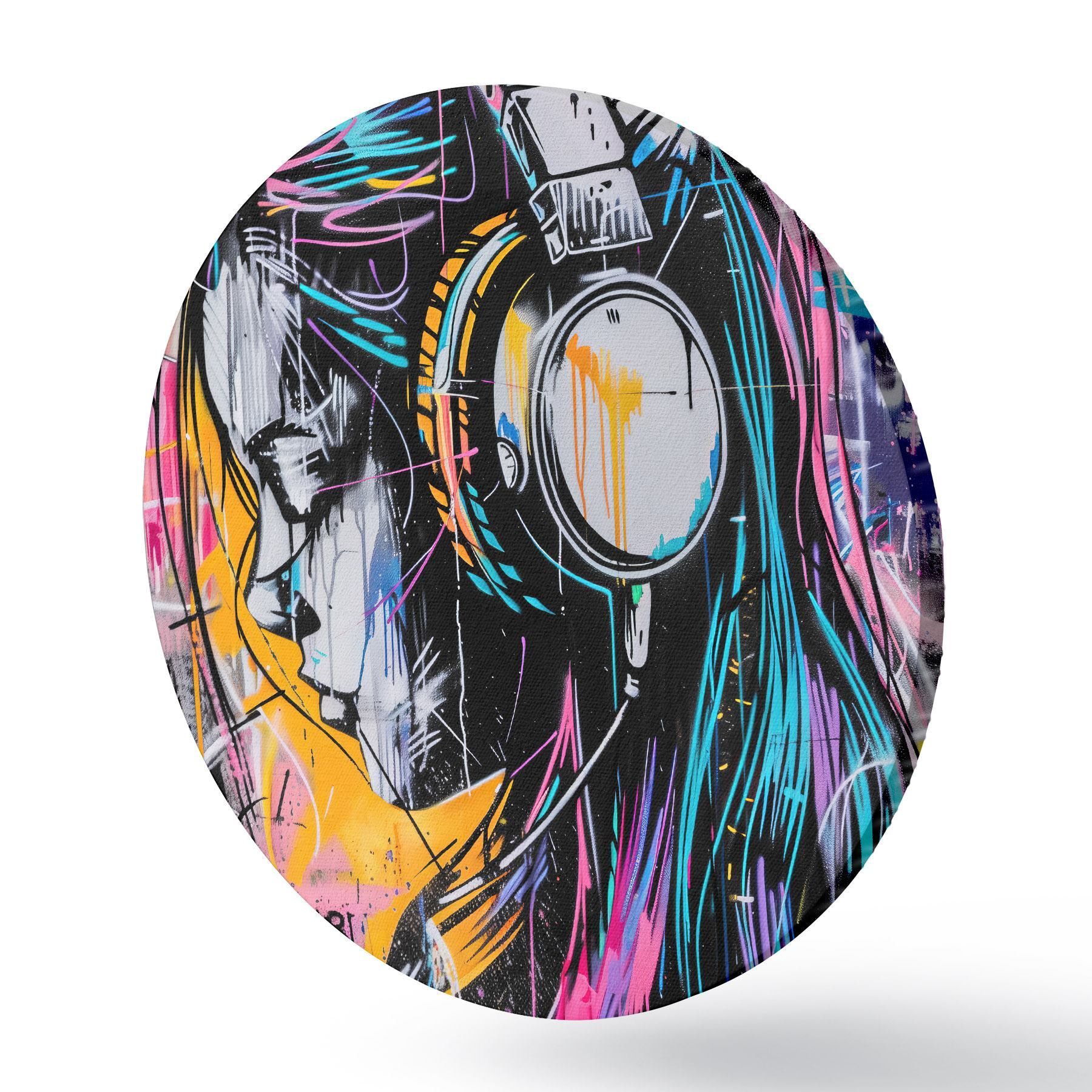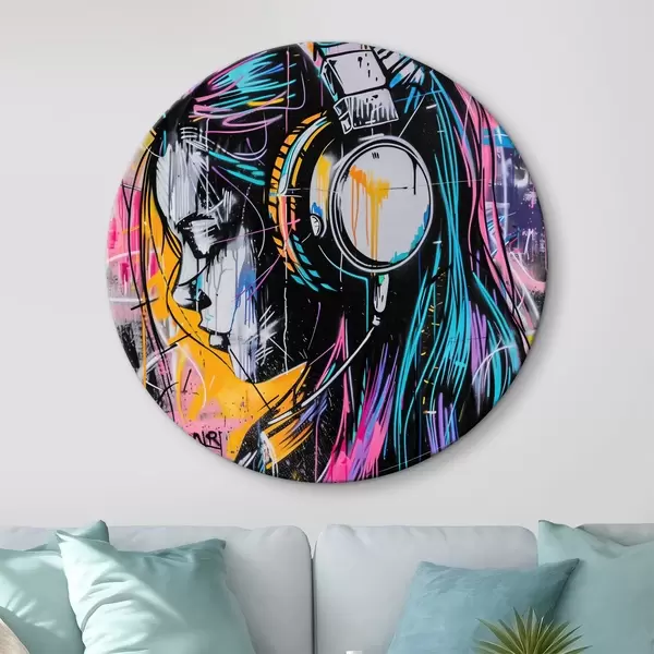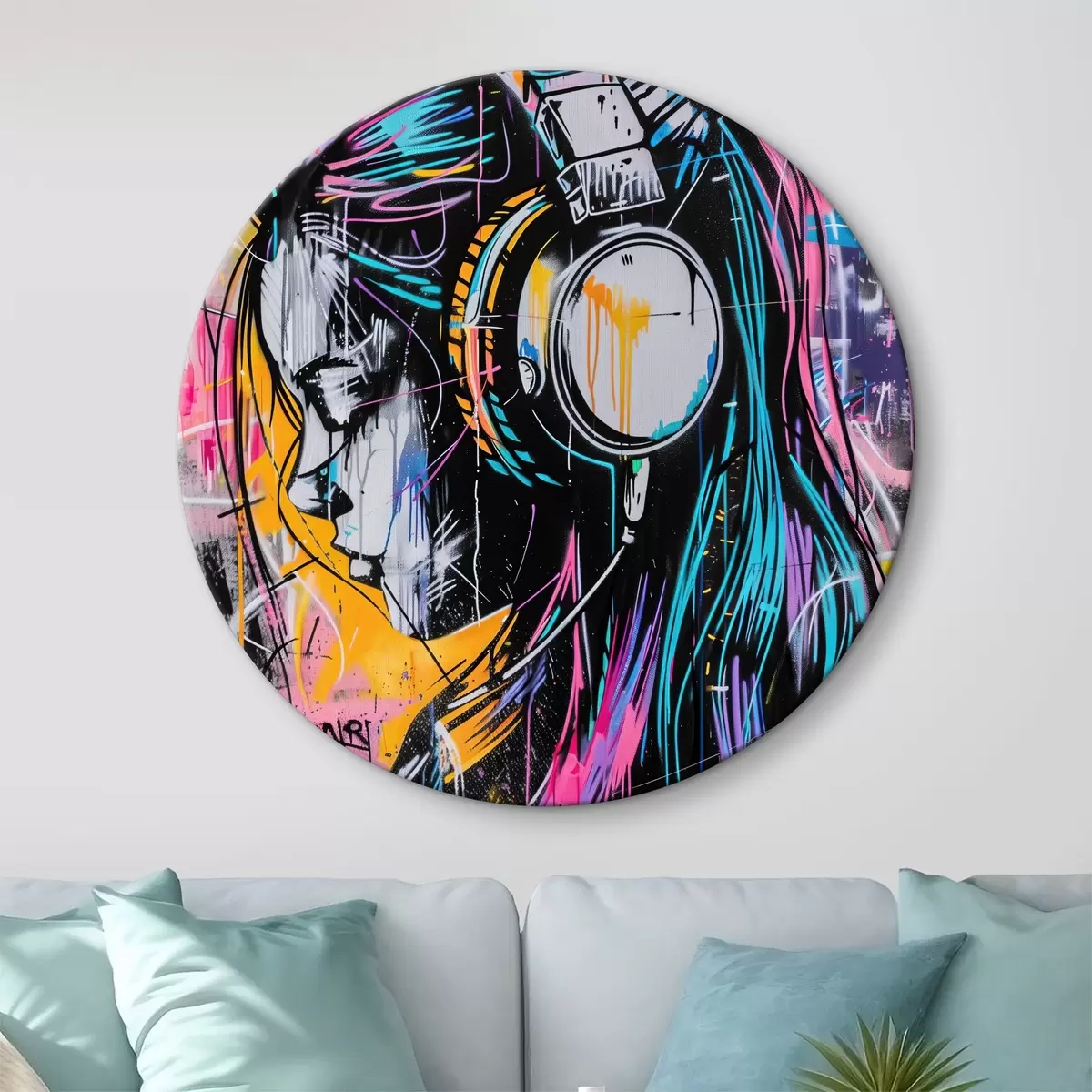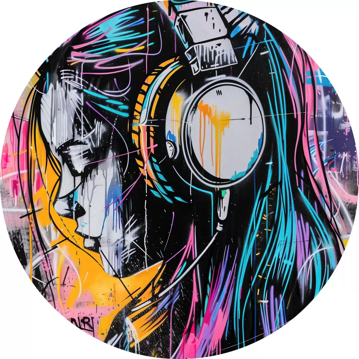 Apaļas gleznas Sieviete ar austiņām grafiti stilā r39443