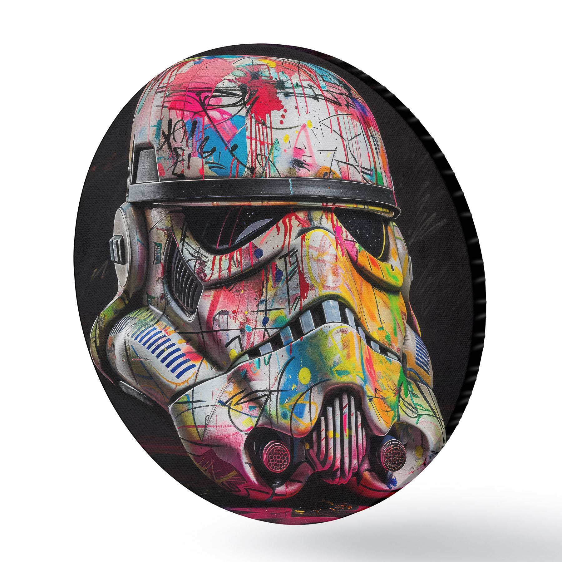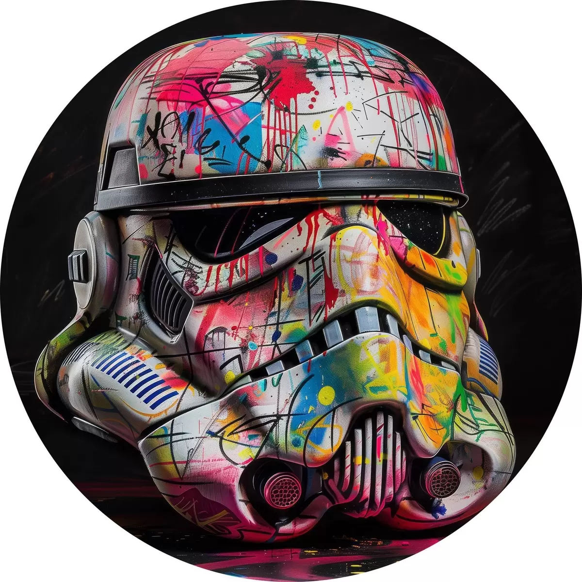 Apaļas gleznas Zvaigžņu karu uzbrukuma ķivere, kas pārklāta ar košu ielu mākslu un grafiti r39453