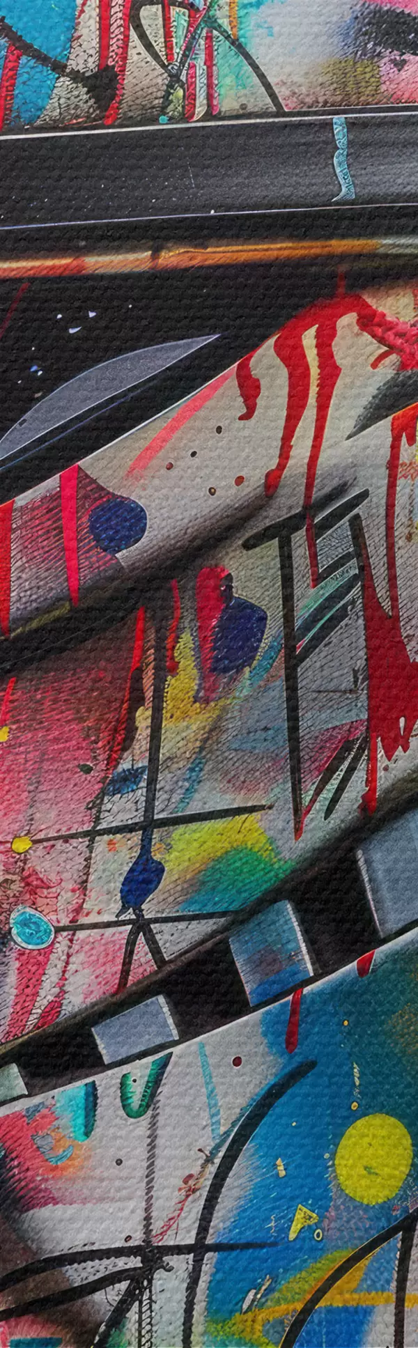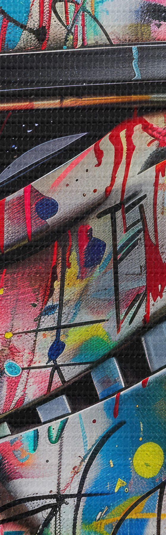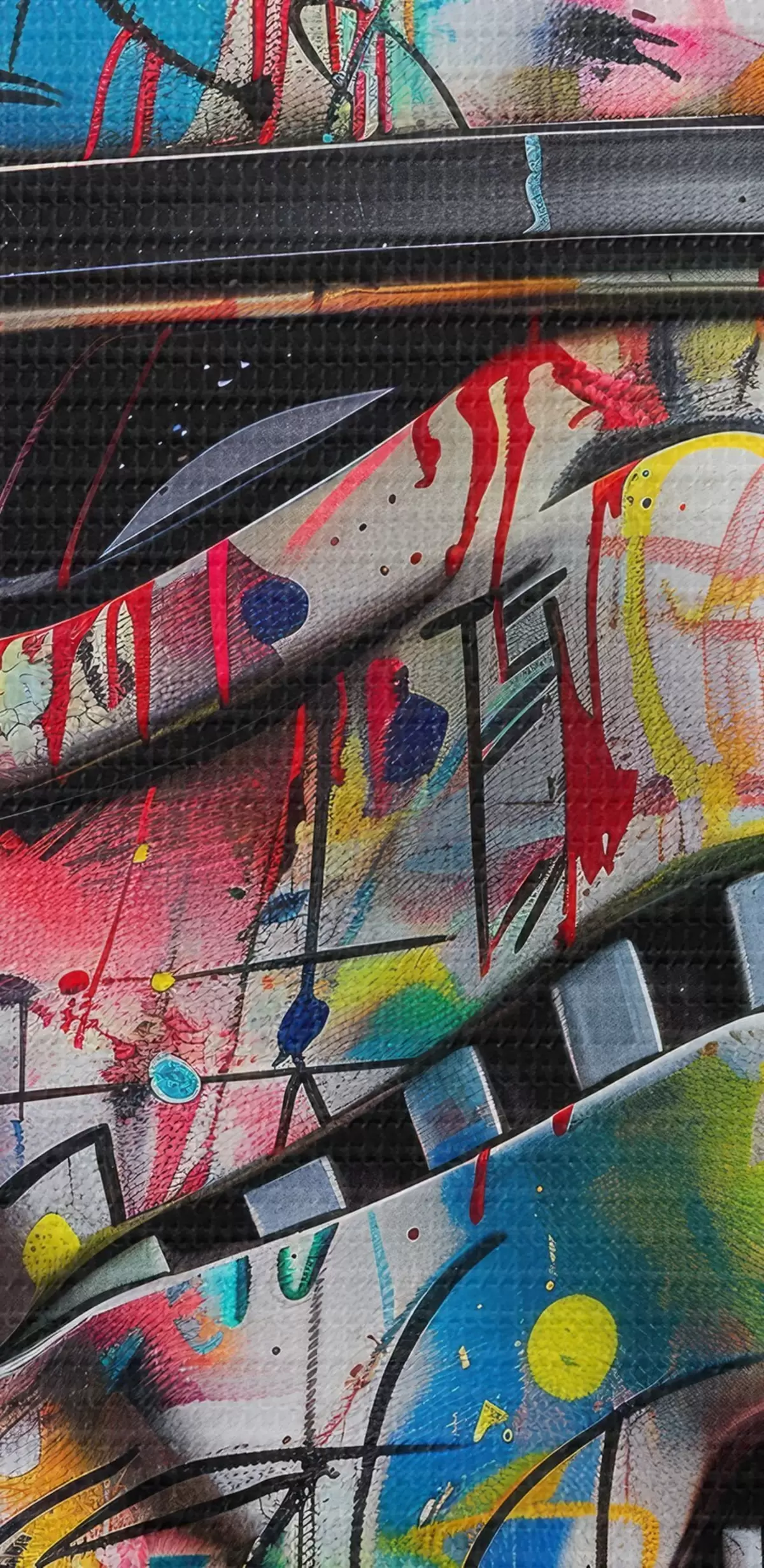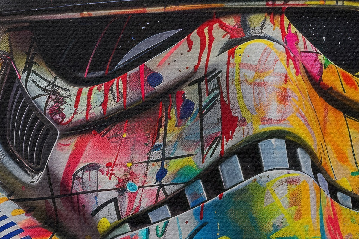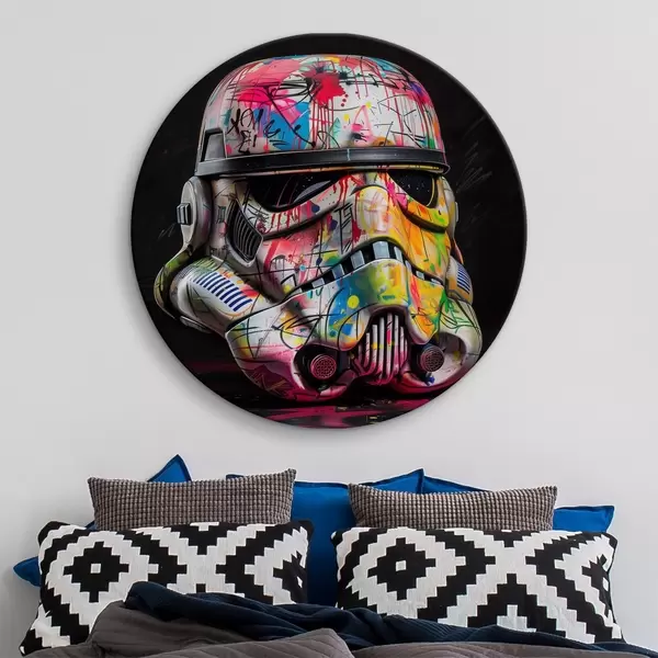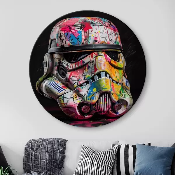Attēls Zvaigžņu karu uzbrukuma ķivere, kas pārklāta ar košu ielu mākslu un grafiti Nr r39453