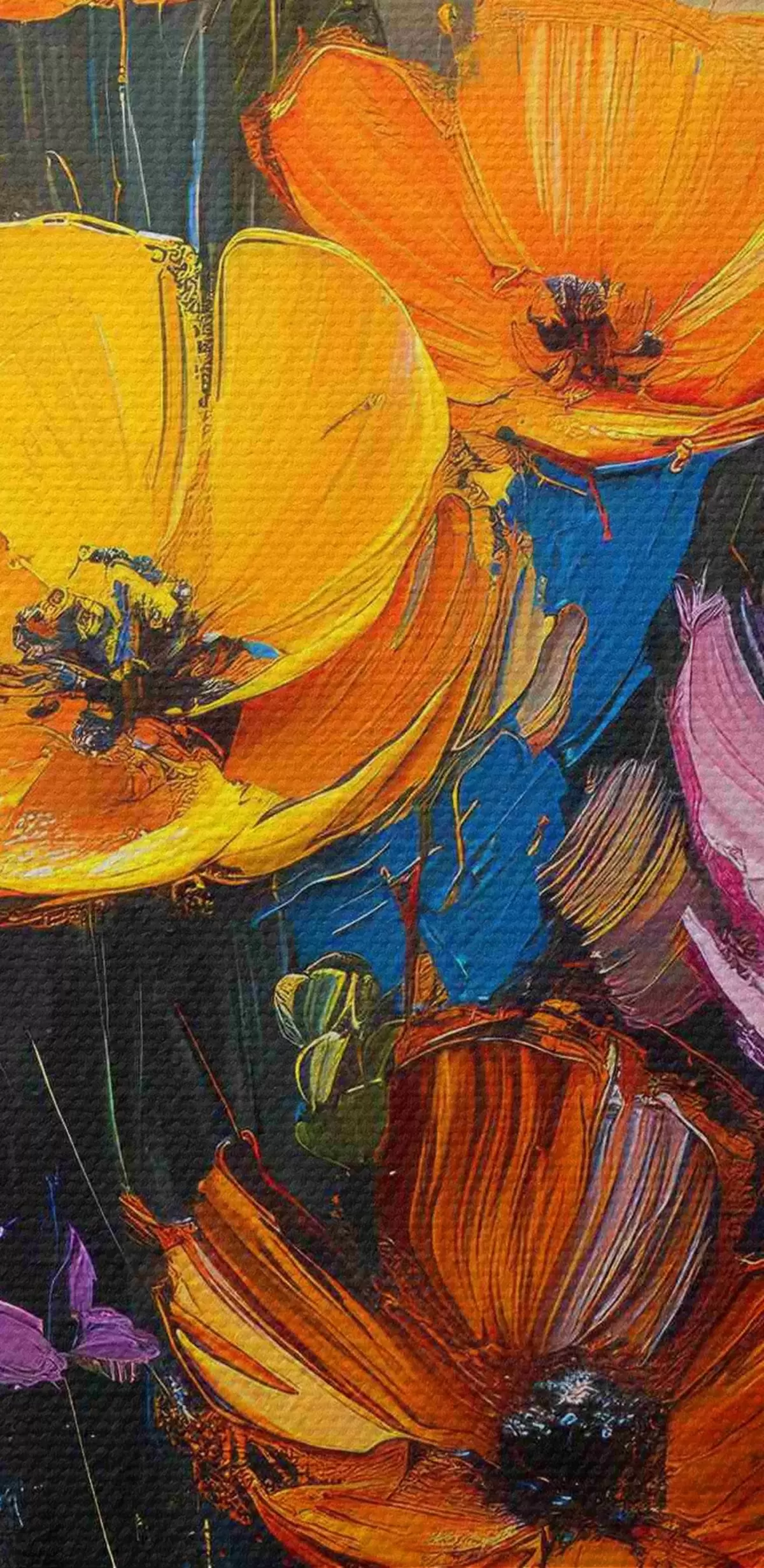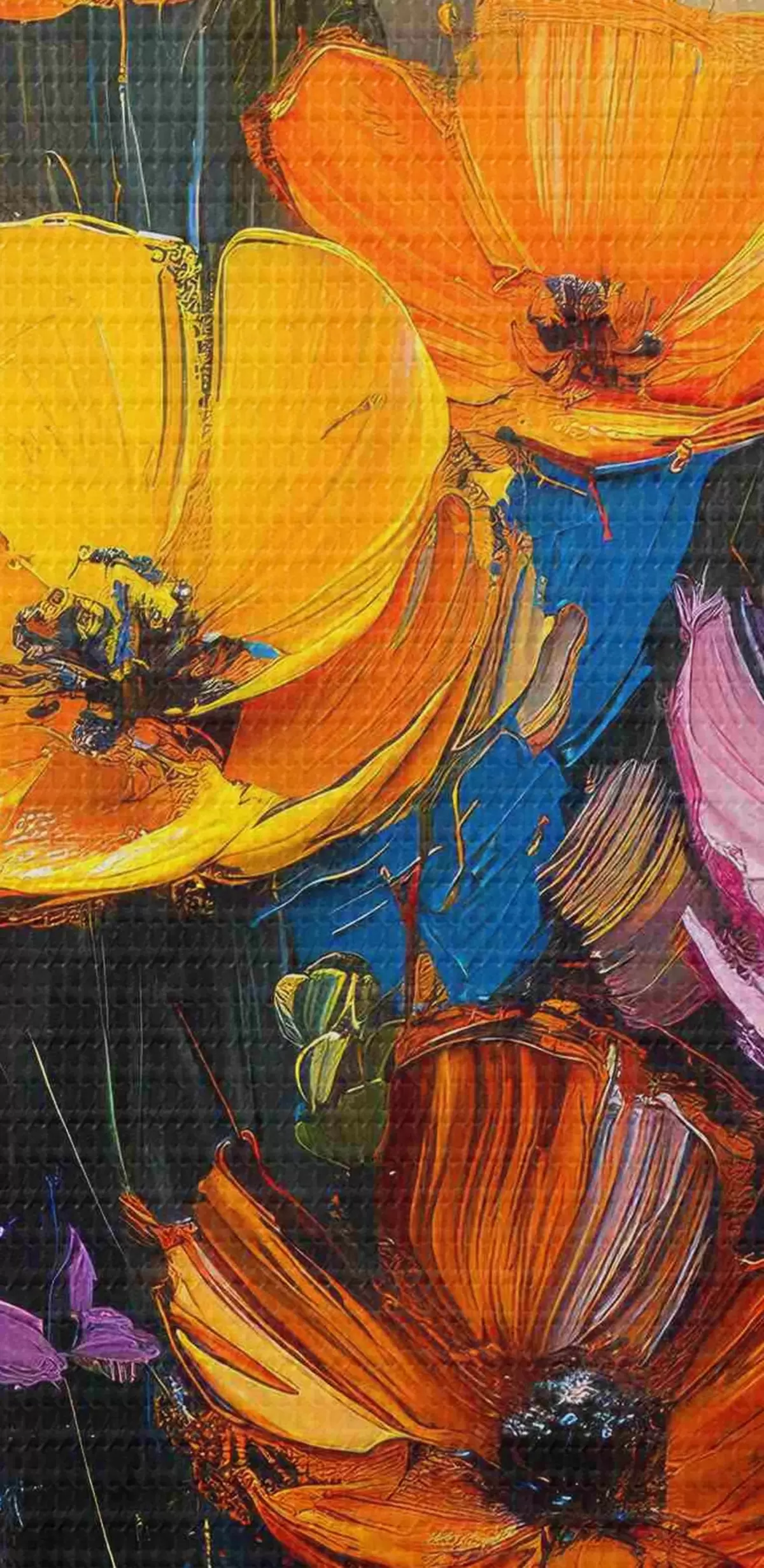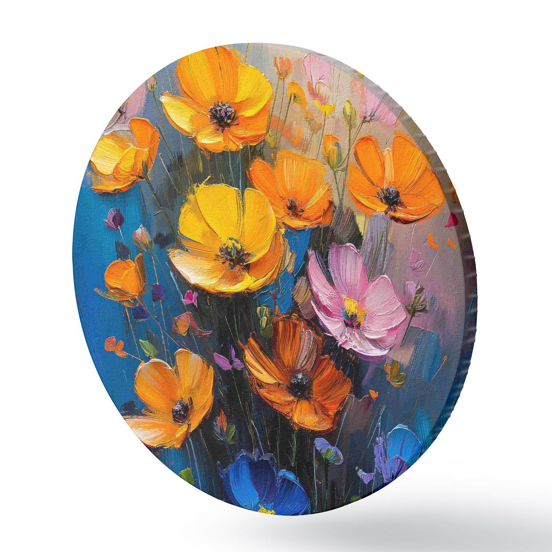Attēls Gleznota simfonija: gaiši dzeltenas, oranžas, rozā un zilas magones ar otu Nr r39454