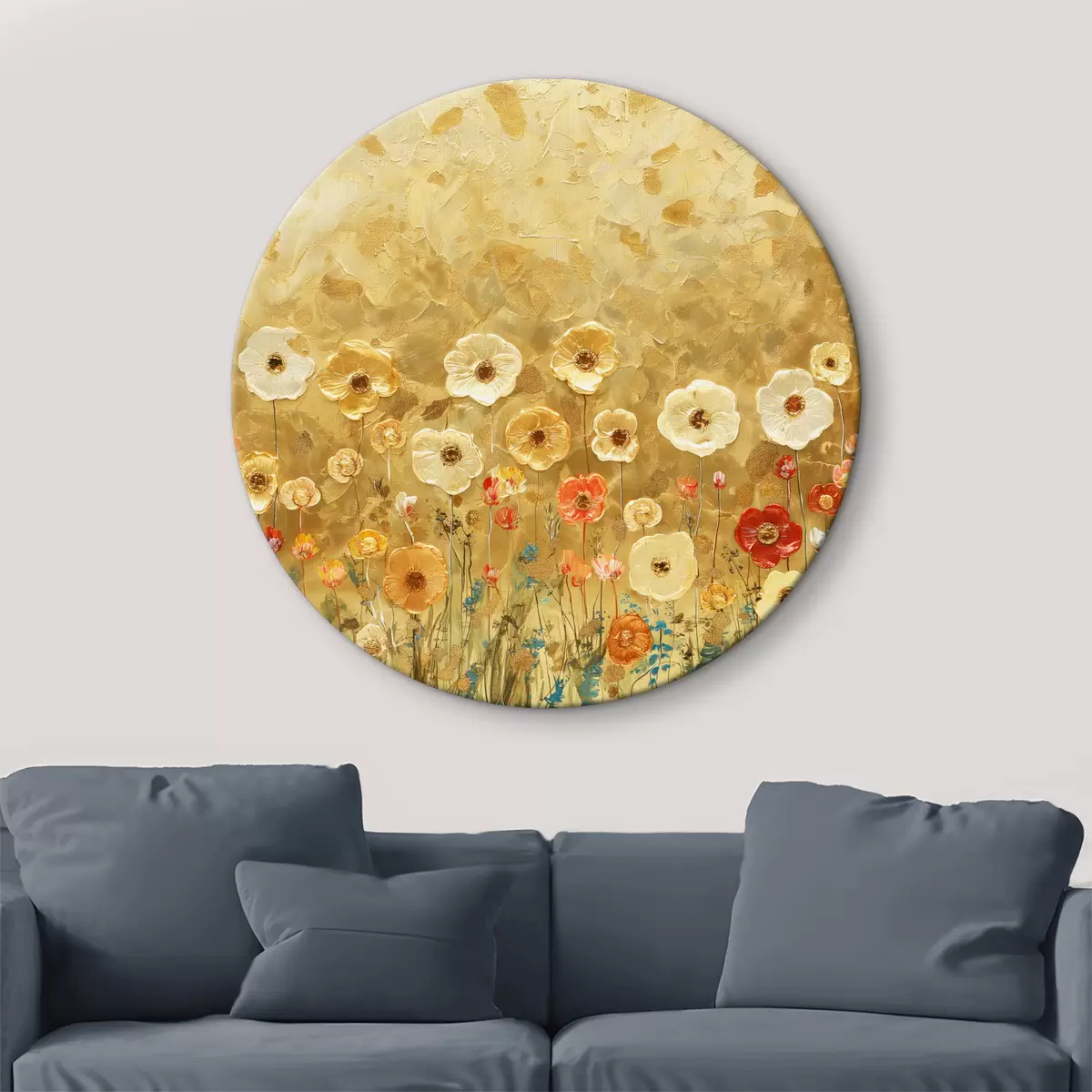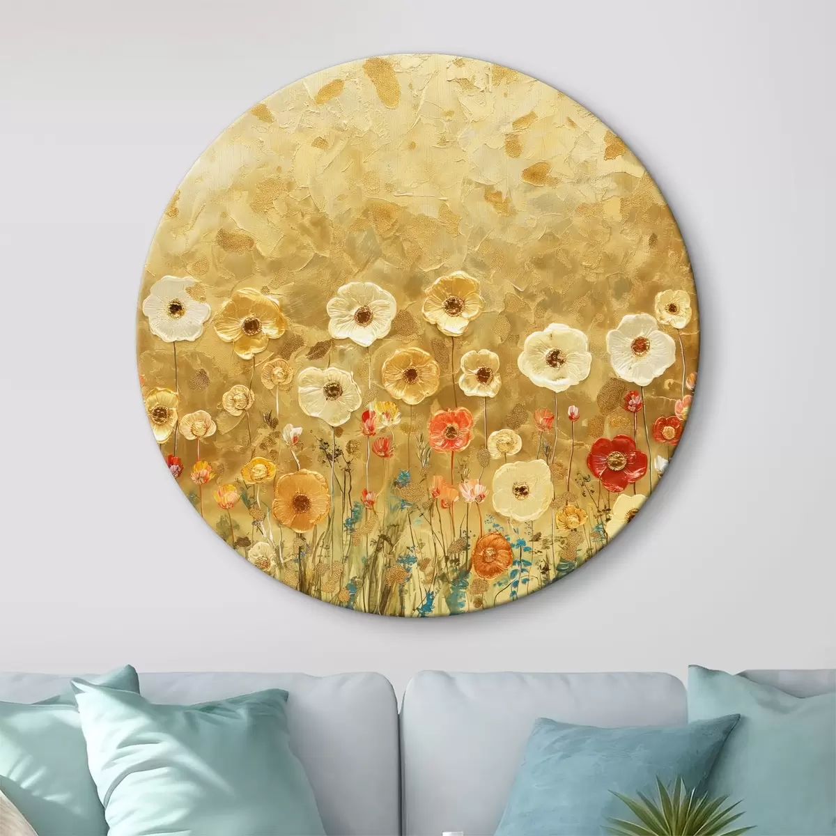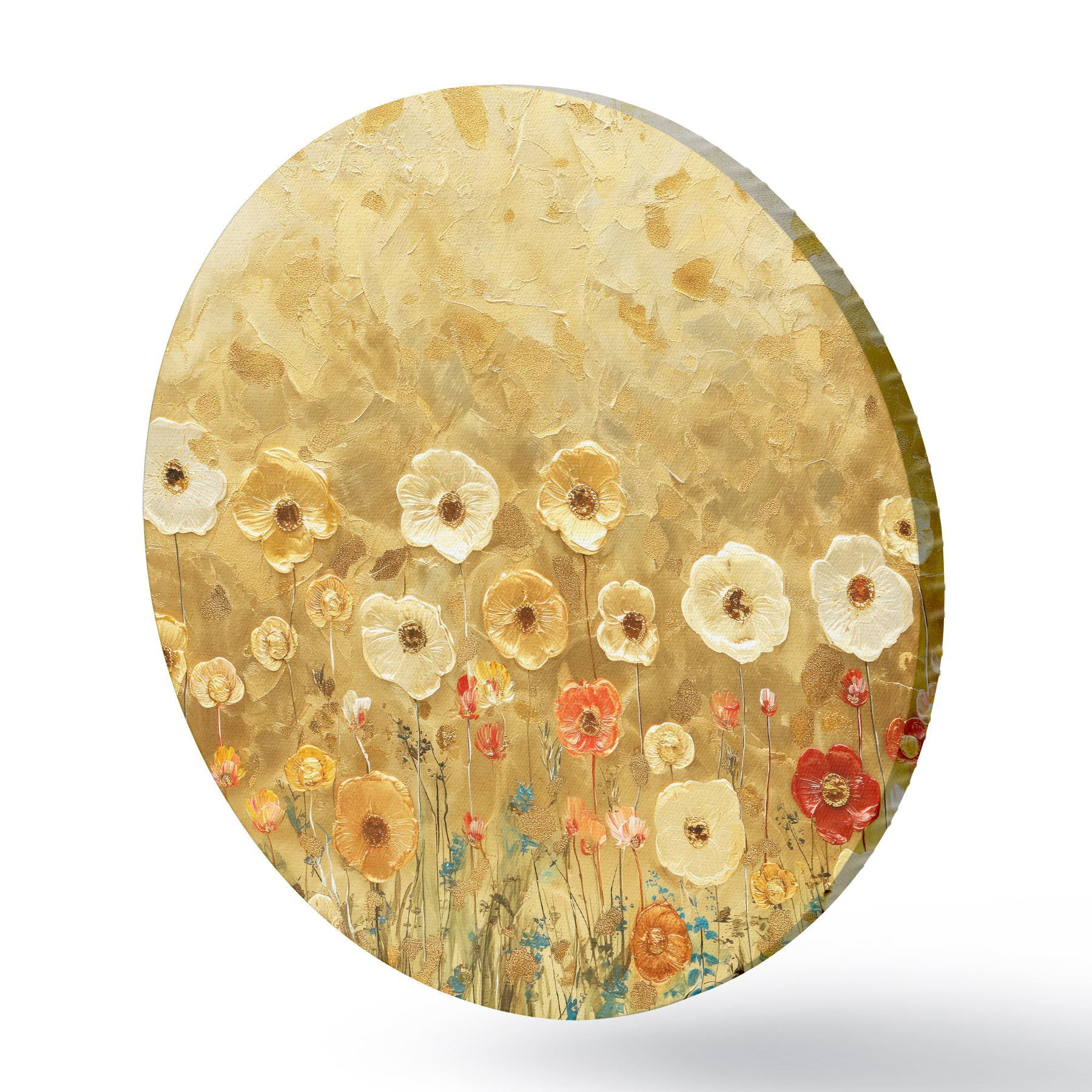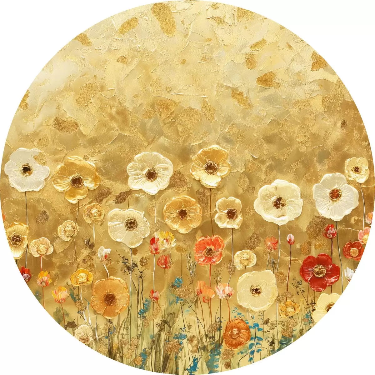 Apaļas gleznas klimta stila pļava: maigi pasteļziedu ziedi ar izkausētu tekstūru r39464