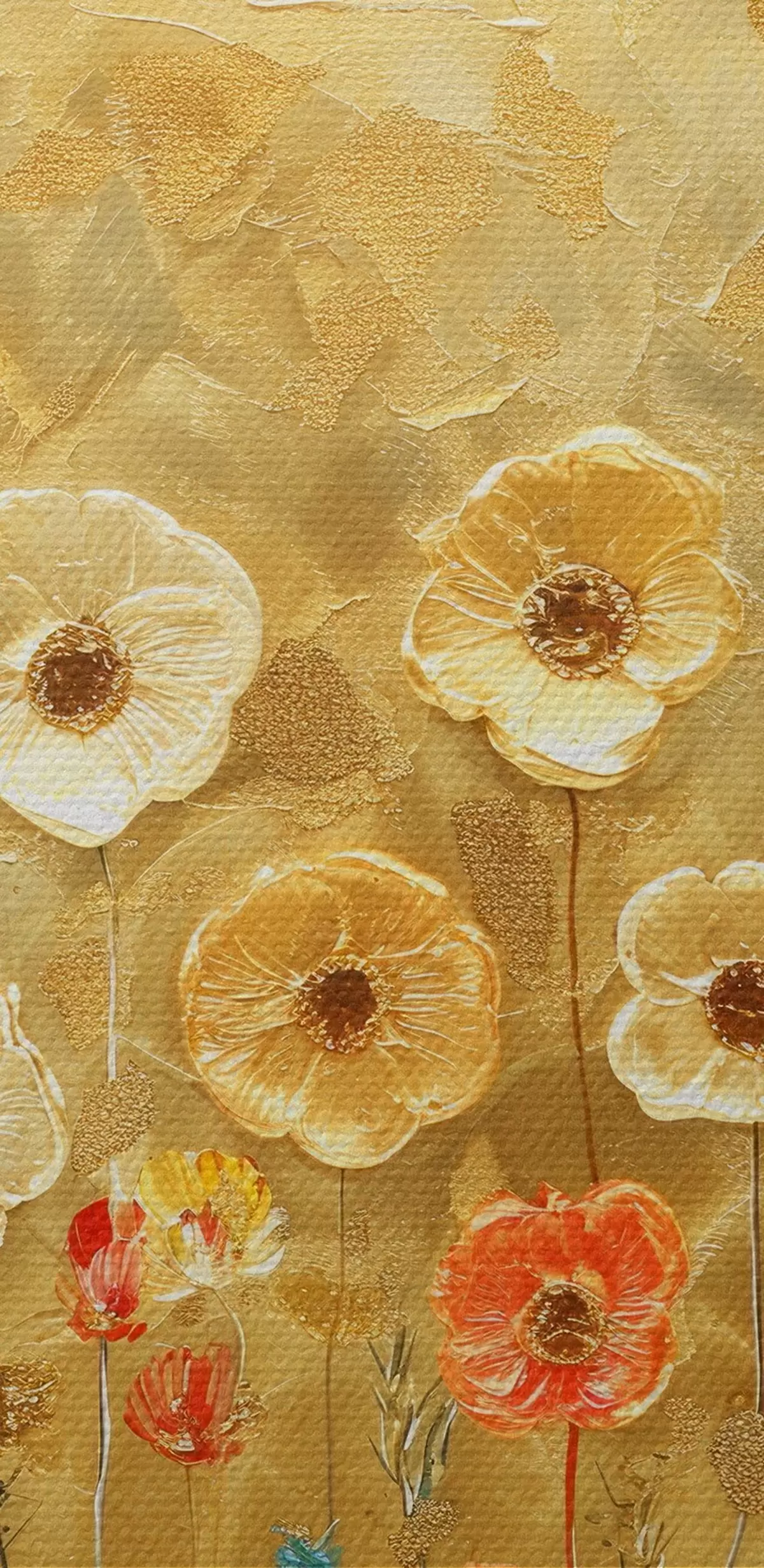 Attēls klimta stila pļava: maigi pasteļziedu ziedi ar izkausētu tekstūru Nr r39464