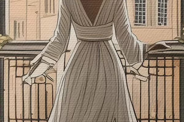Attēls meitenes siluets baltā kleitā pie liela loga Nr r39480