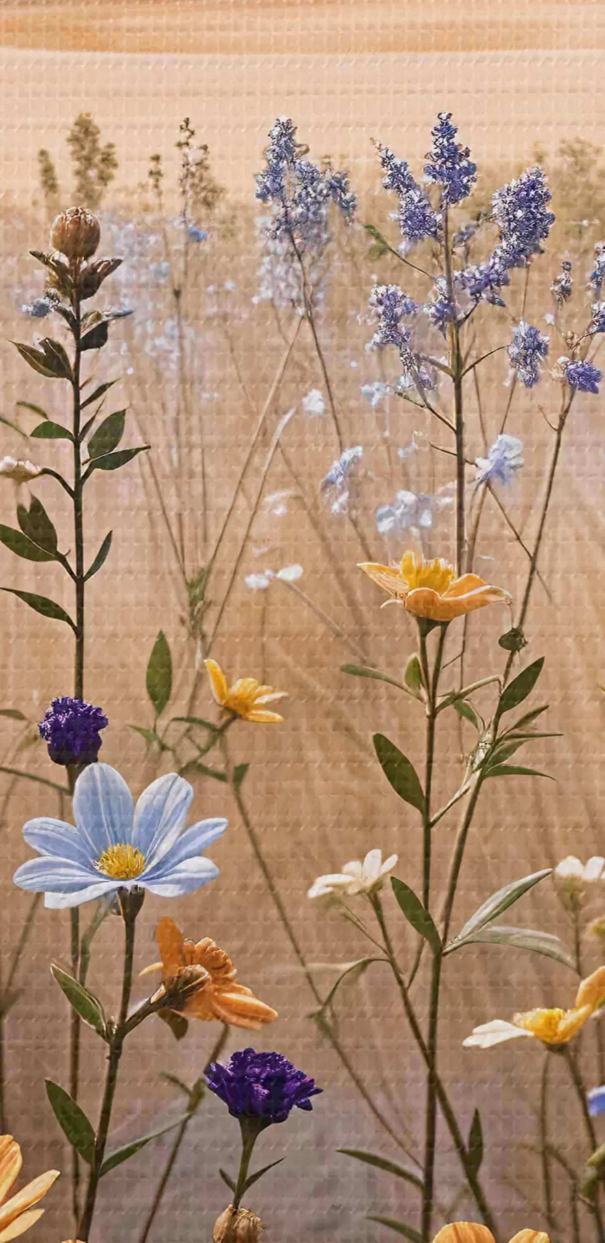 Attēls Priekšplānā krāsainu savvaļas ziedu lauks ar ezeru un kalniem fonā Nr r39502