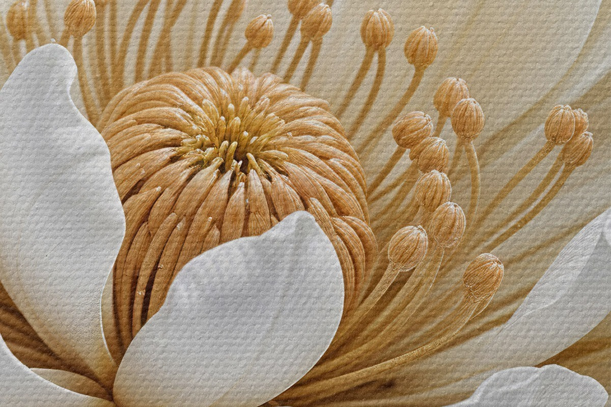Smalkais diegu pinums uz šī audekla atgādina profesionālu mākslinieku audeklu virsmu.
