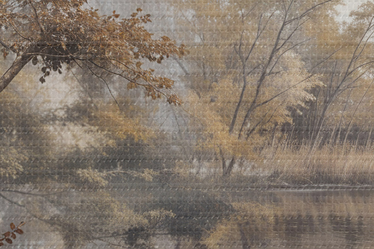 Attēls Rudens ainava ar mierīgu ezeru, ko ieskauj koki ar košiem oranžiem un dzelteniem zaļumiem Nr r39511