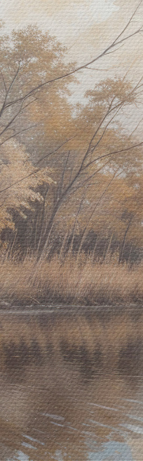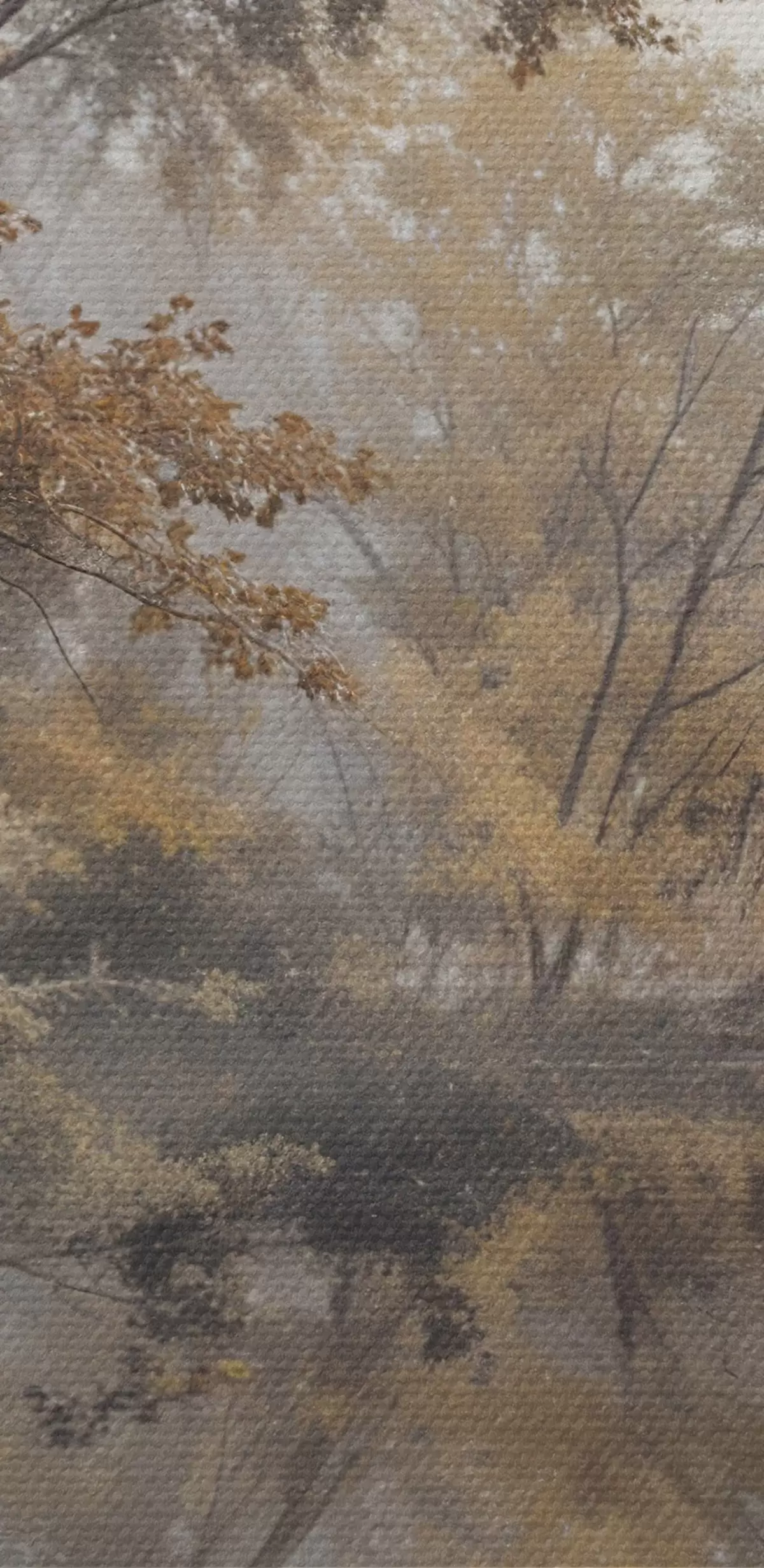 Smalkais diegu pinums uz šī audekla atgādina profesionālu mākslinieku audeklu virsmu.