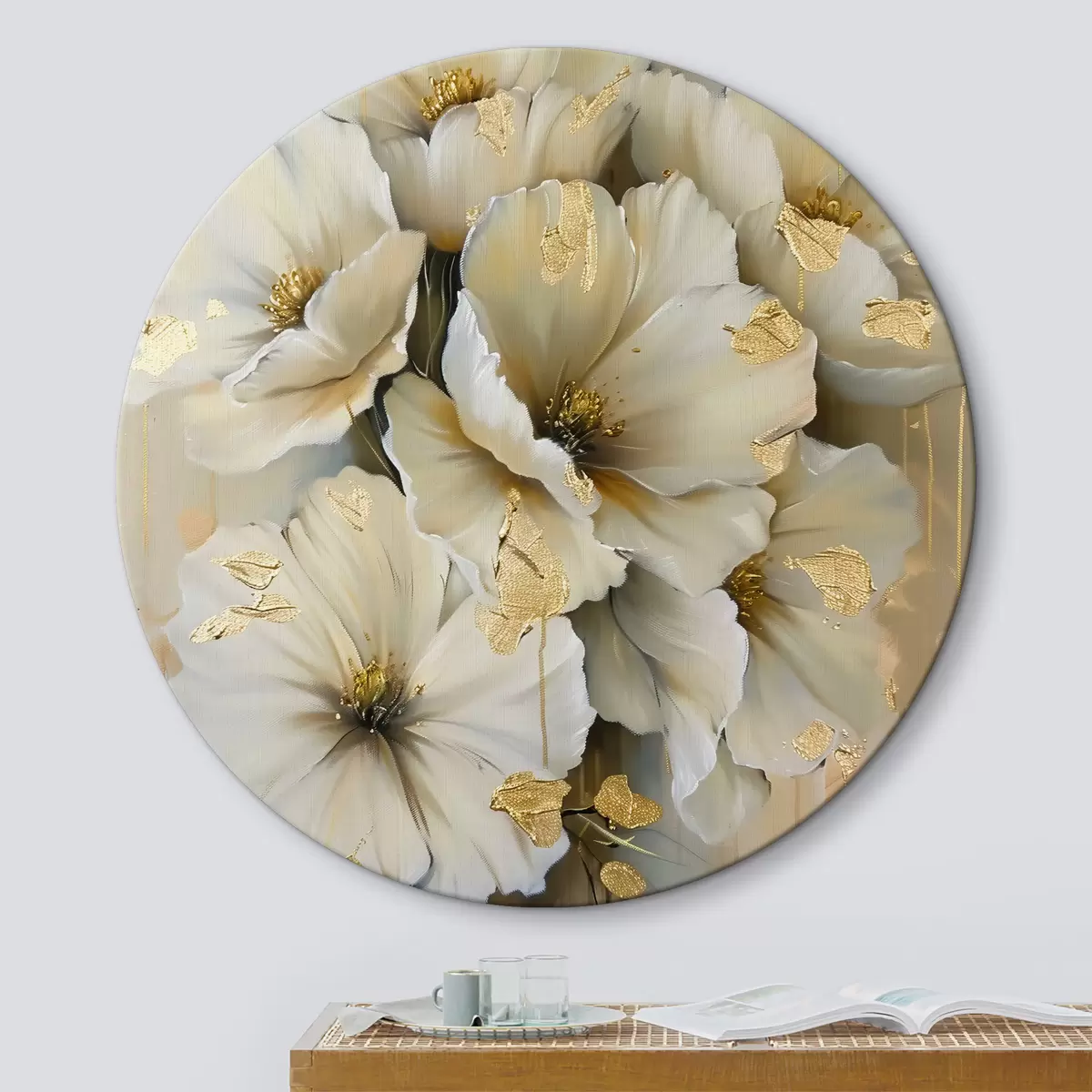 Apaļas gleznas Baltie ziedi r39555
