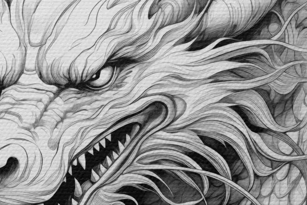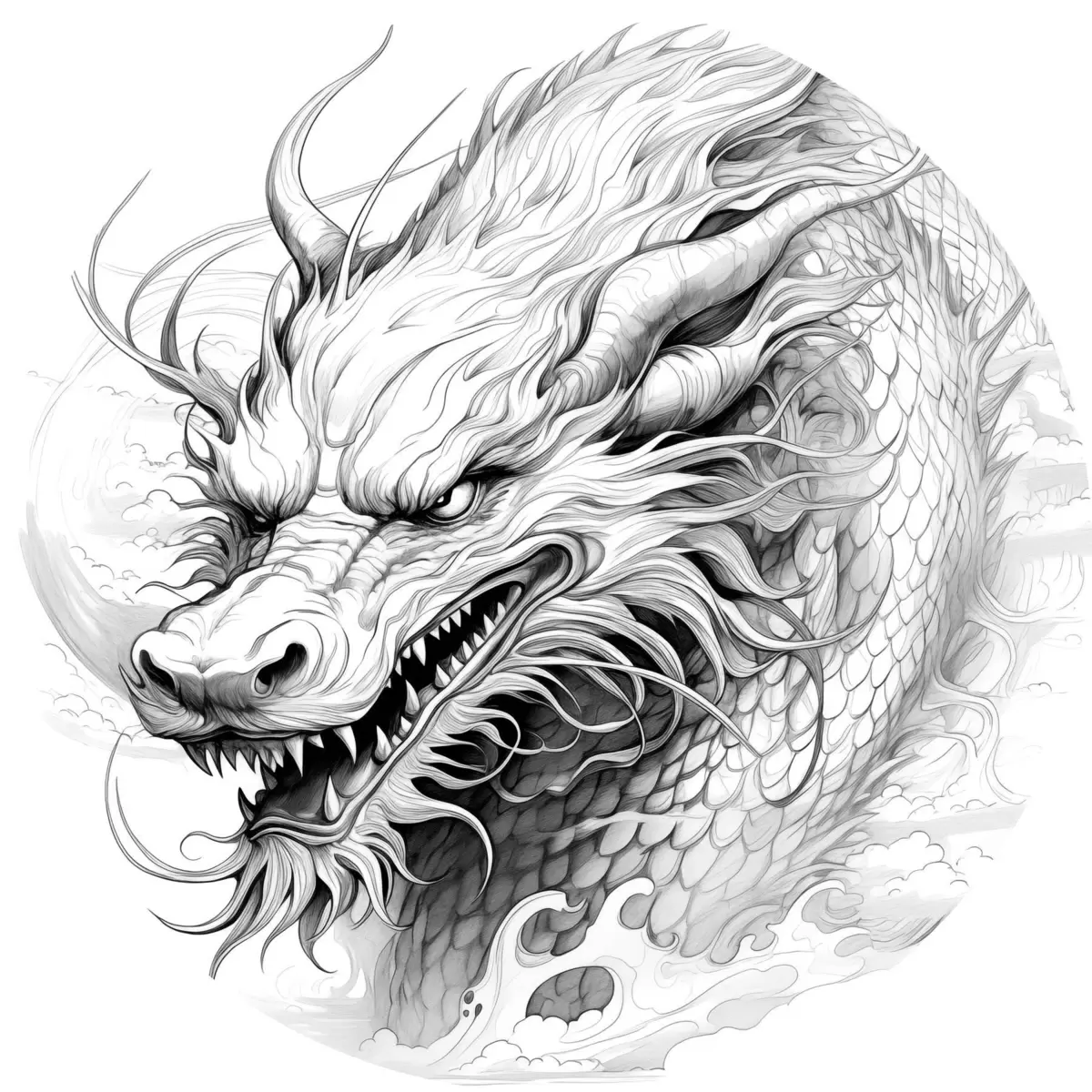 Attēls Ķīniešu stila pūķa līniju zīmējums vienkrāsains Nr r39563