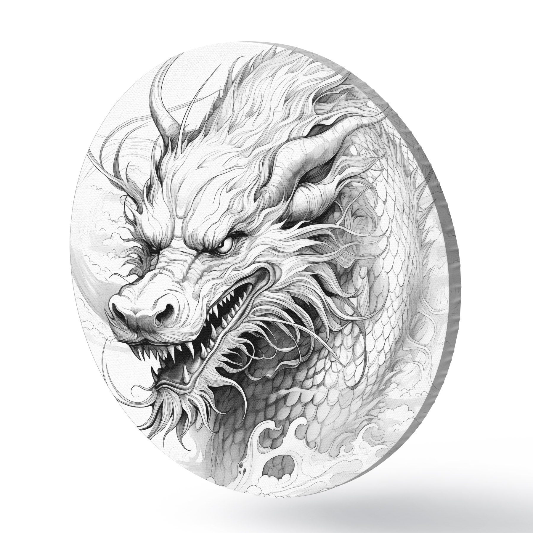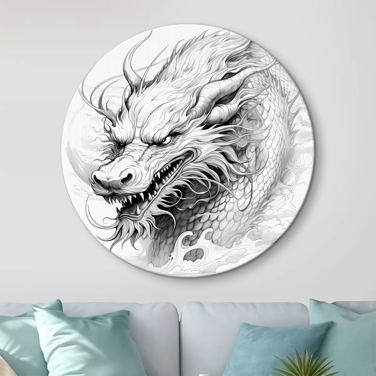 Apaļas gleznas Ķīniešu stila pūķa līniju zīmējums vienkrāsains r39563