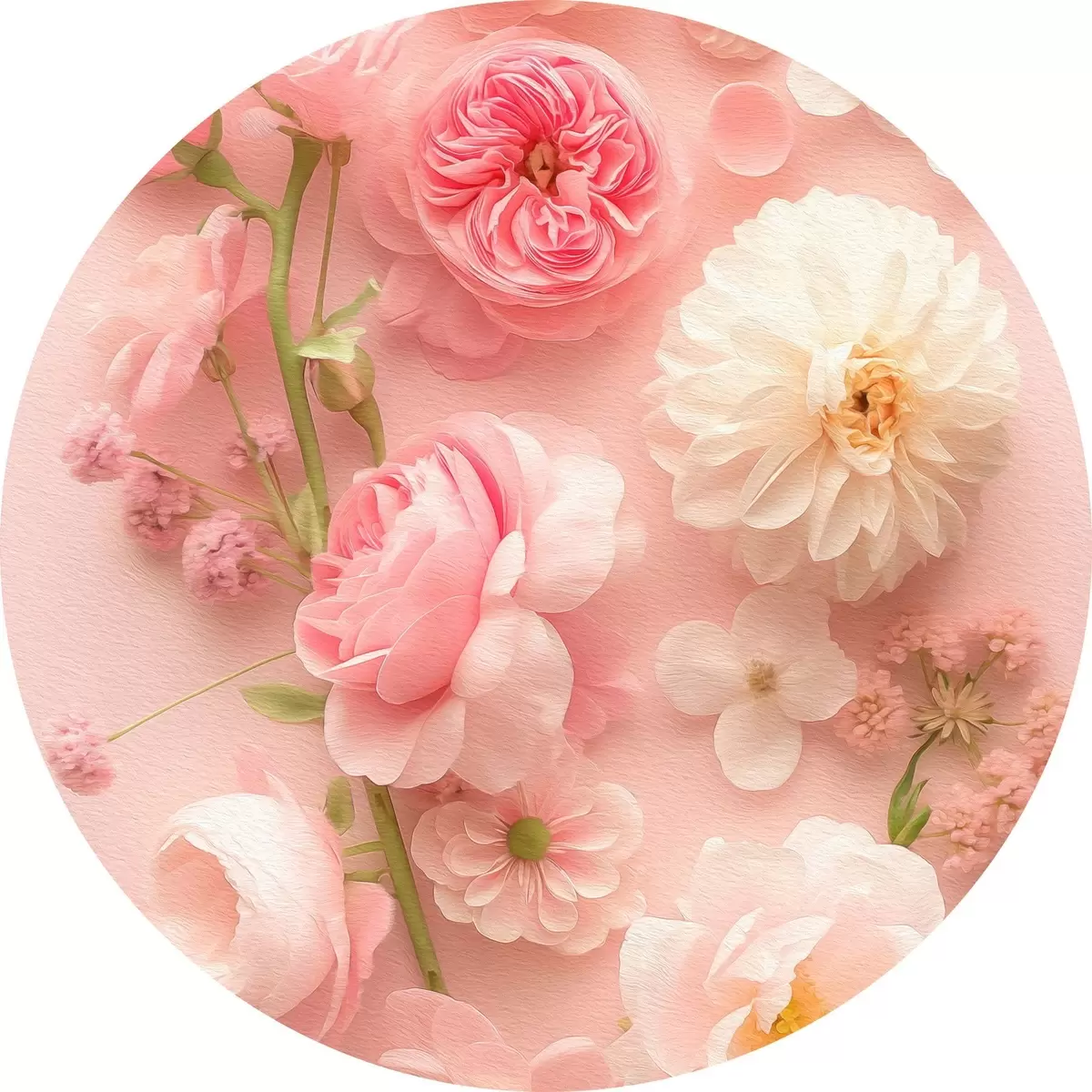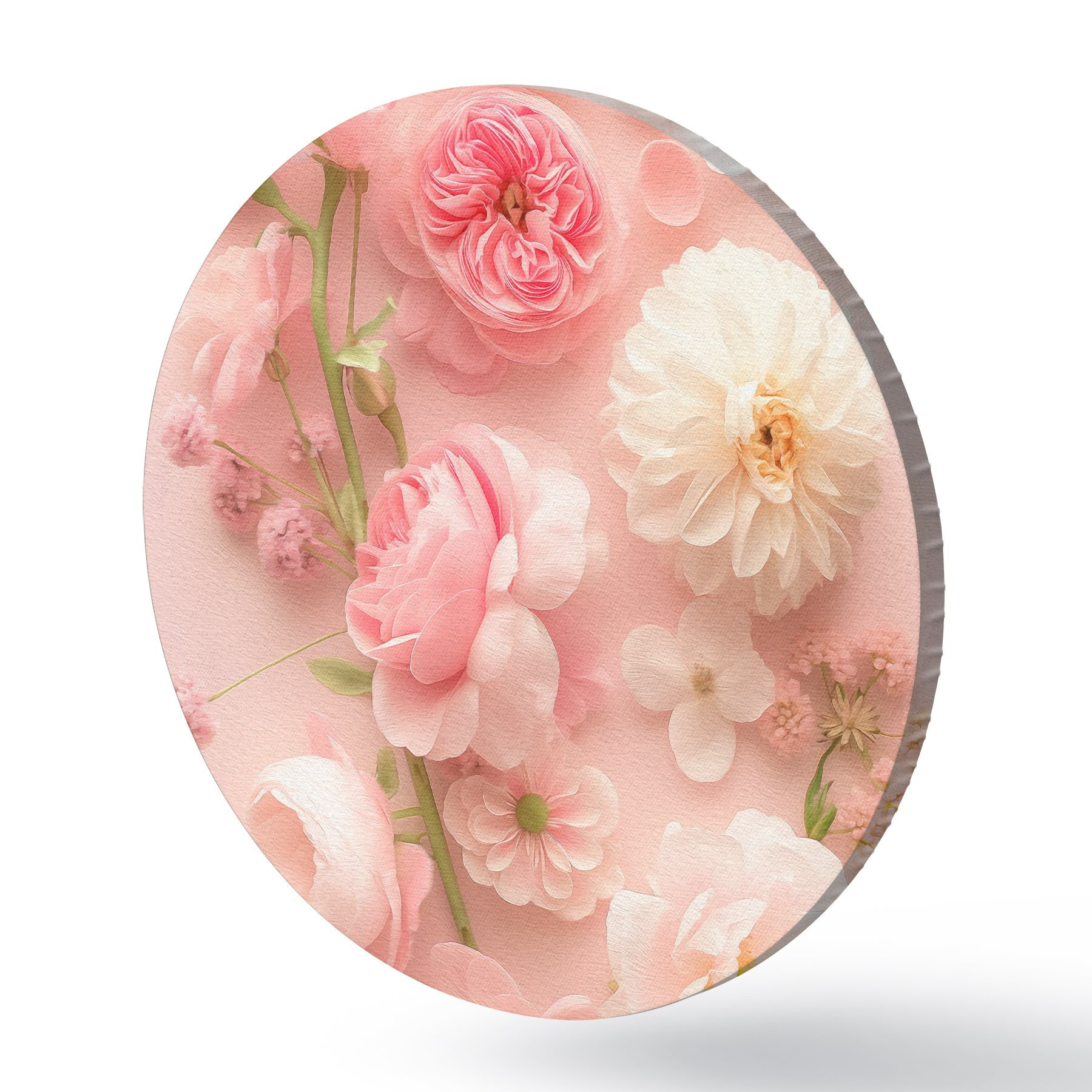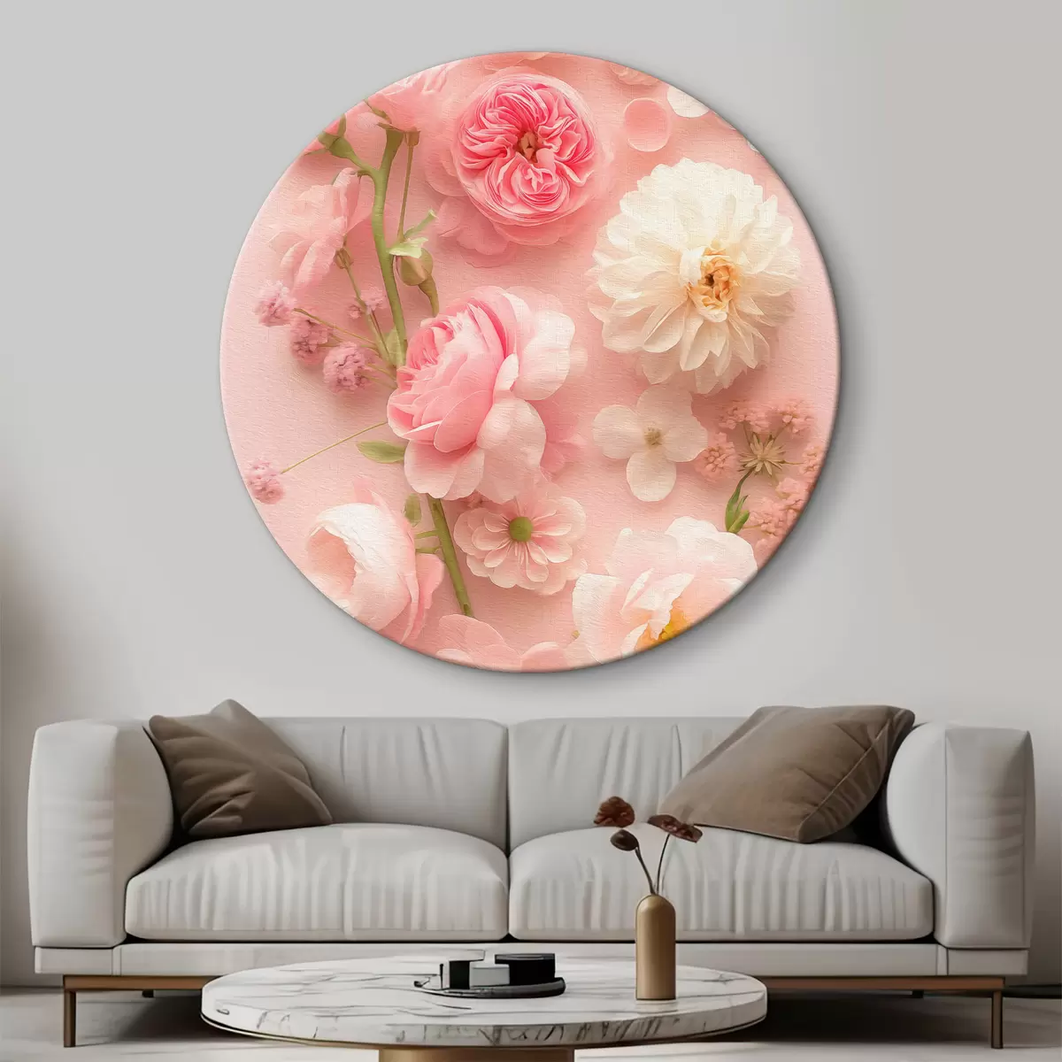 Apaļas gleznas Sulīgi ziedi uz rozā fona r39576