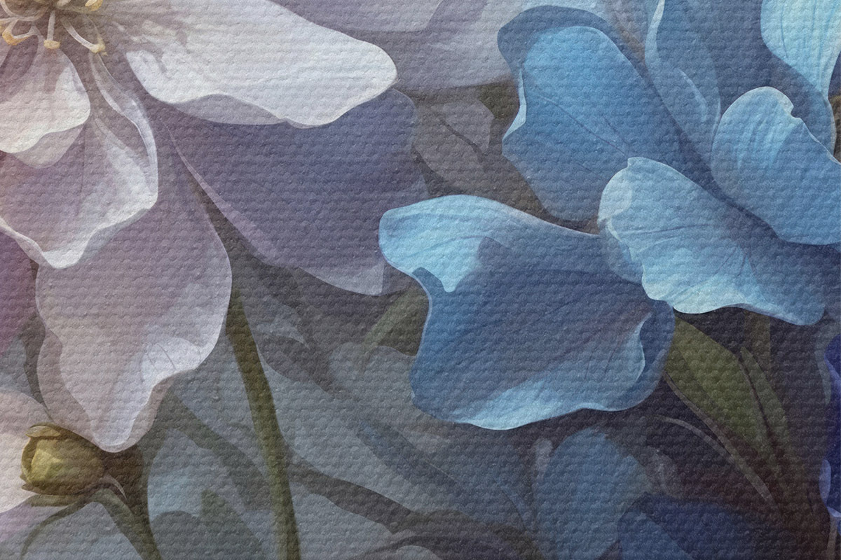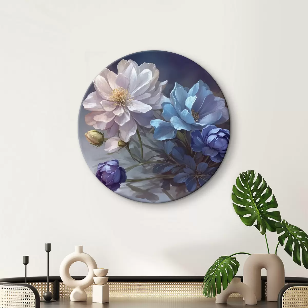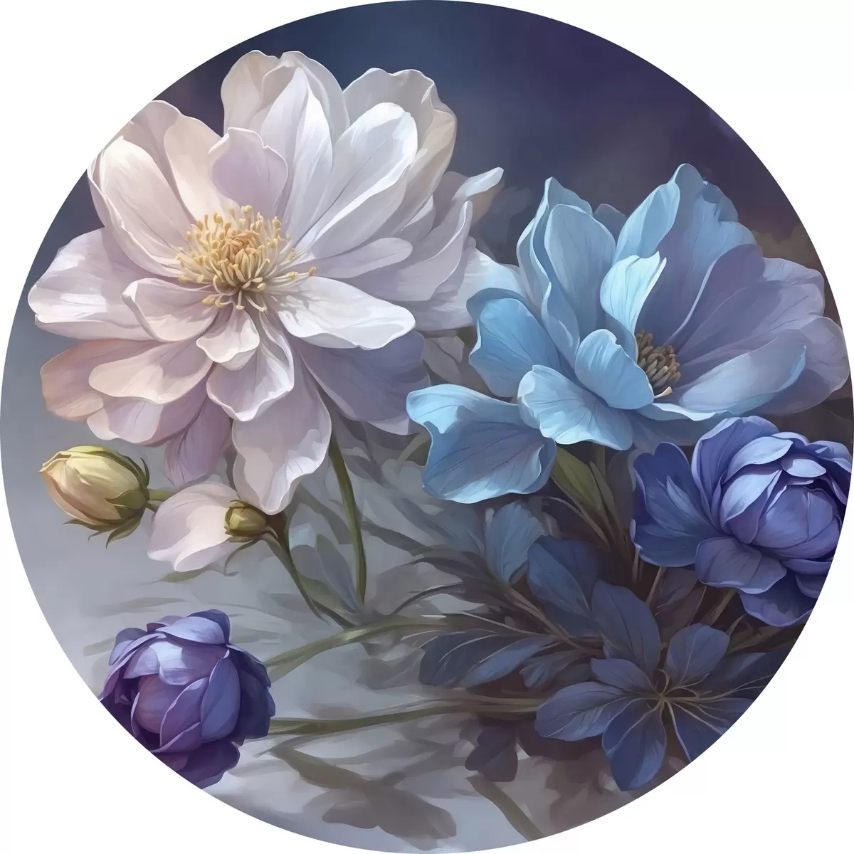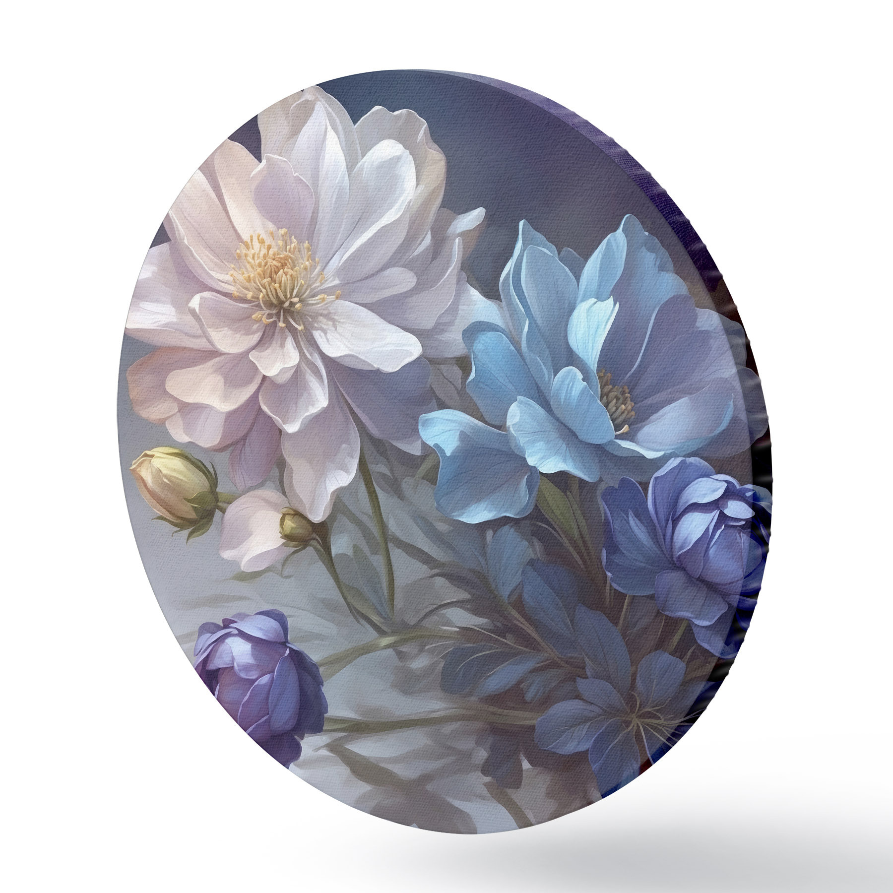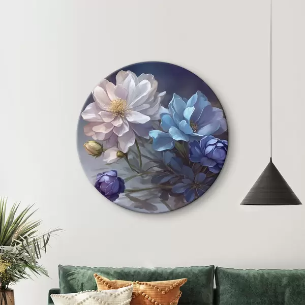 Apaļas gleznas Balti un zili ziedi uz neskaidra fona r39603