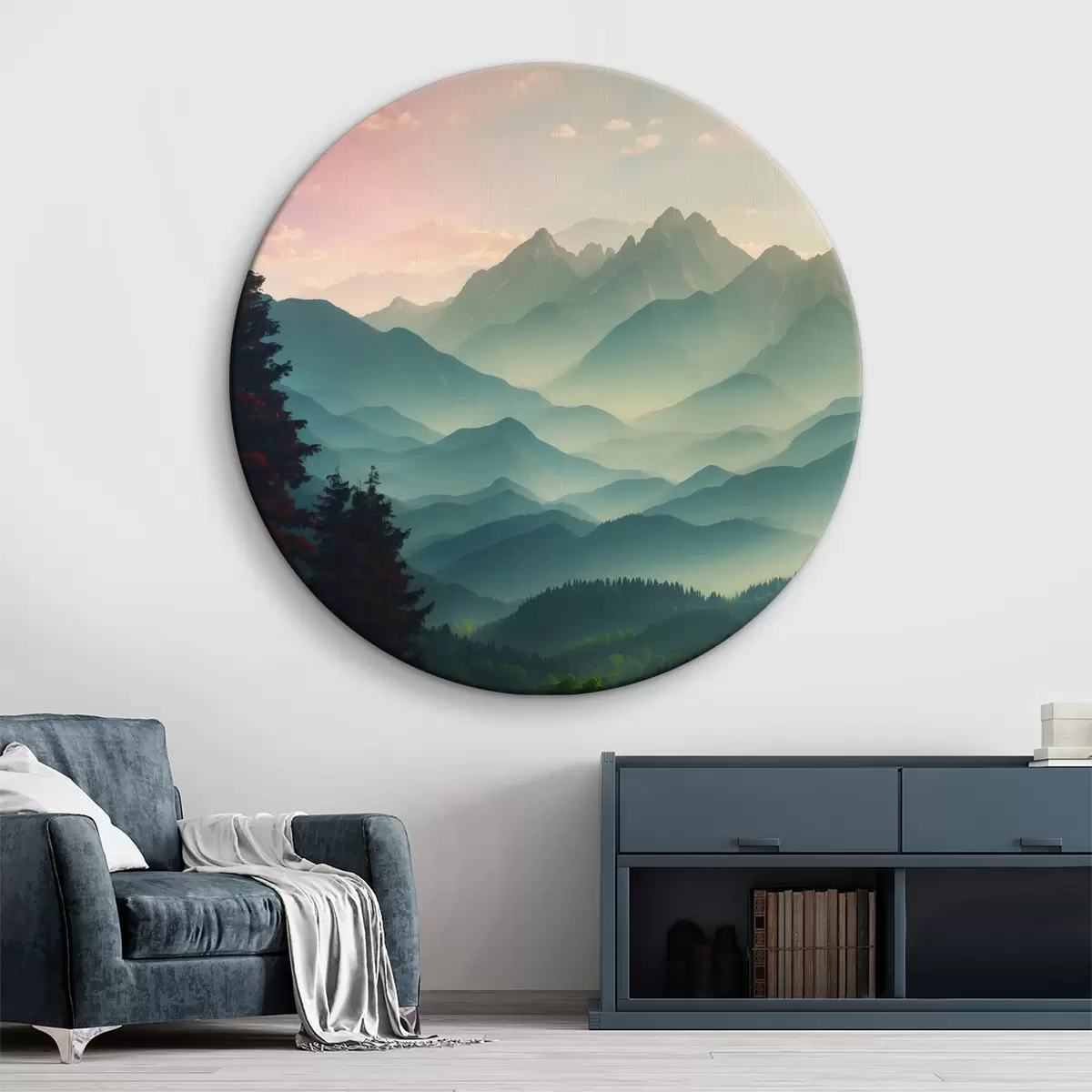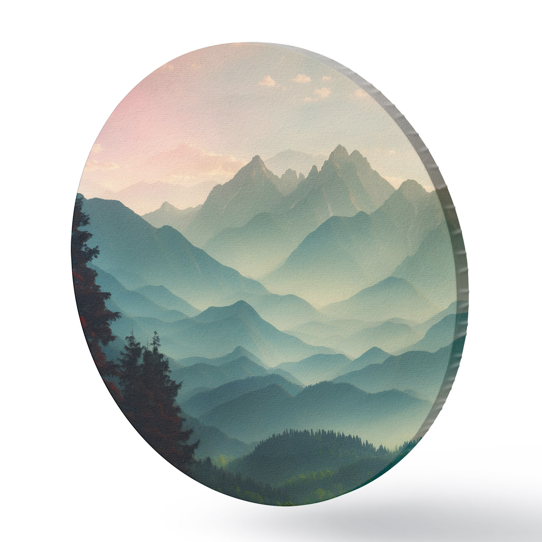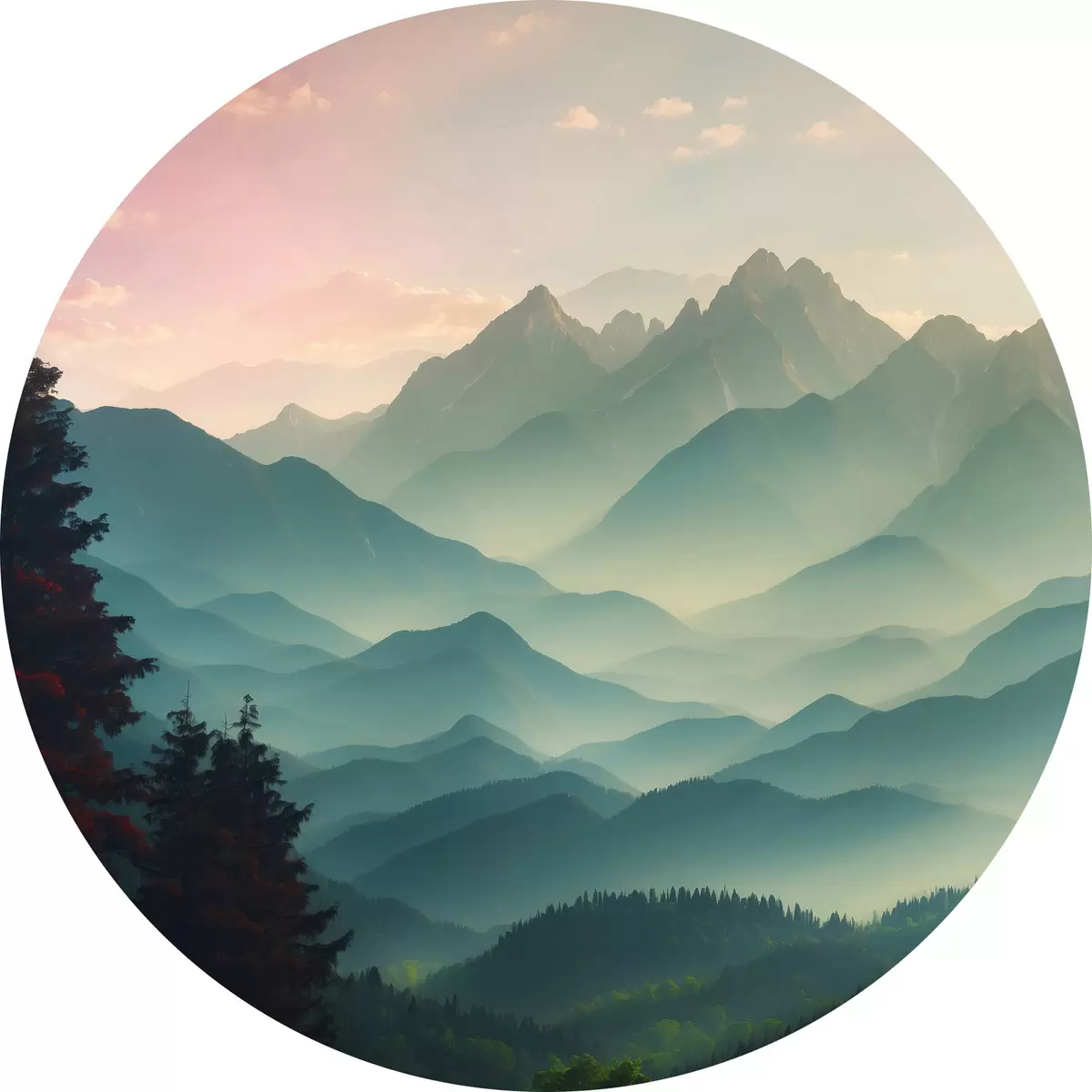 Apaļas gleznas Kalnu skats saullēktā r39607