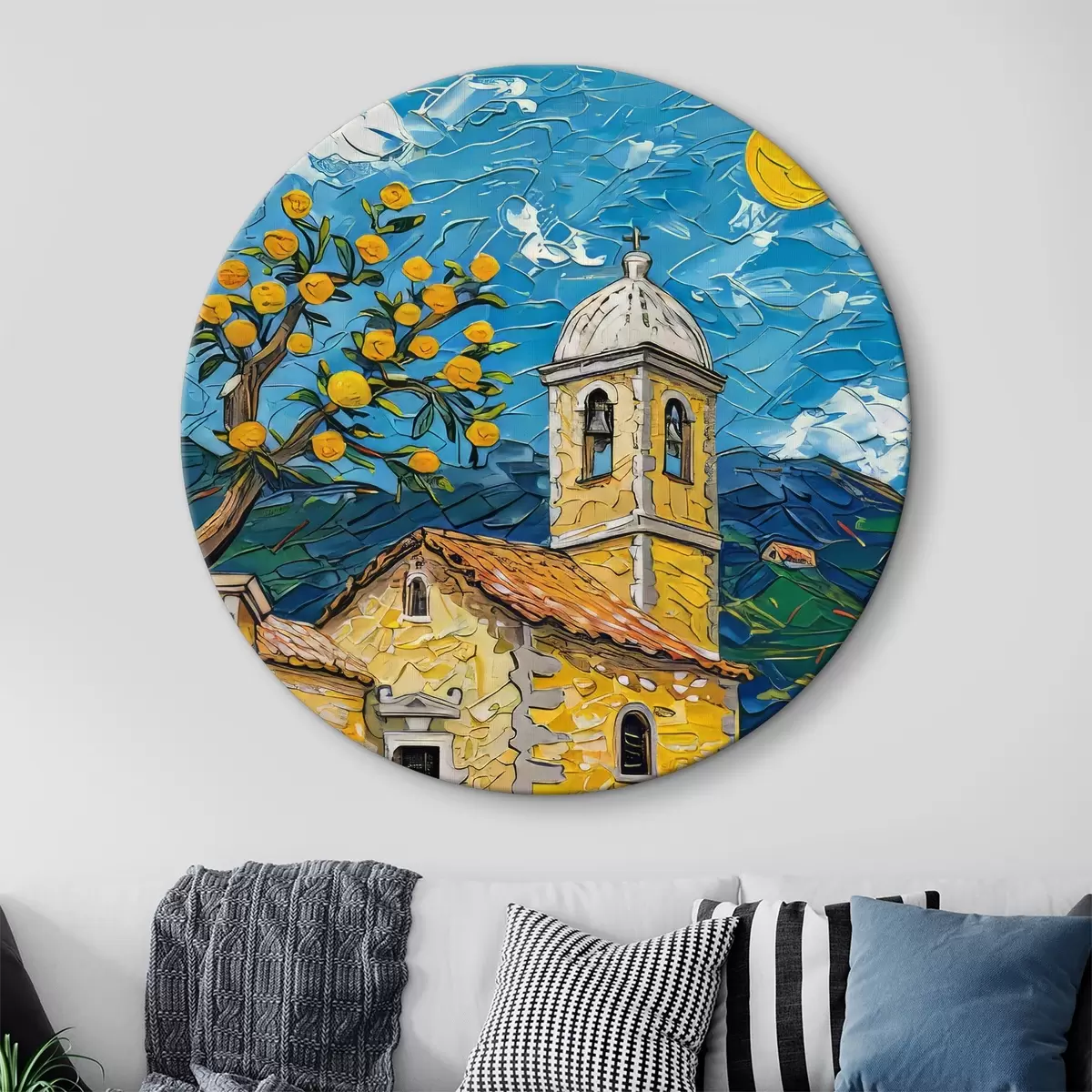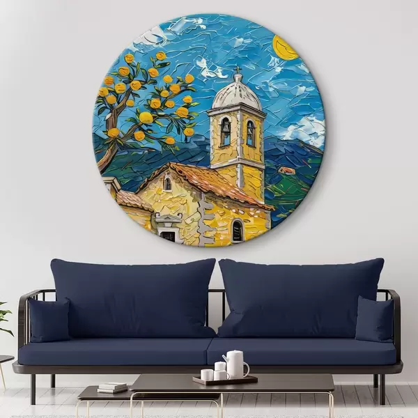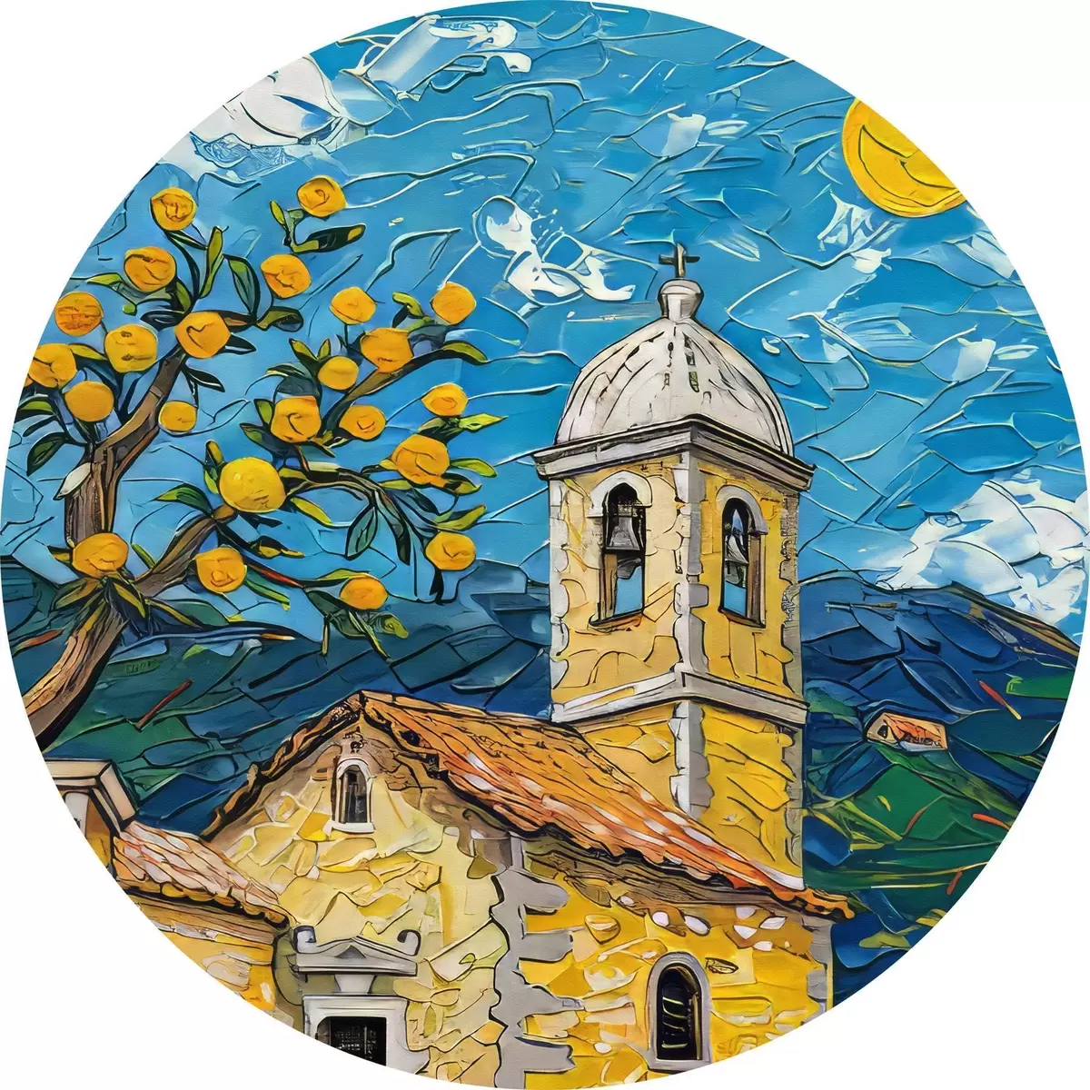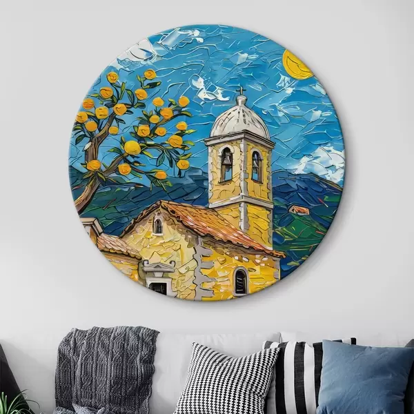 Apaļas gleznas Simone Vunderliha: franču ciemats iespaidīgā vakara gaismā r39656