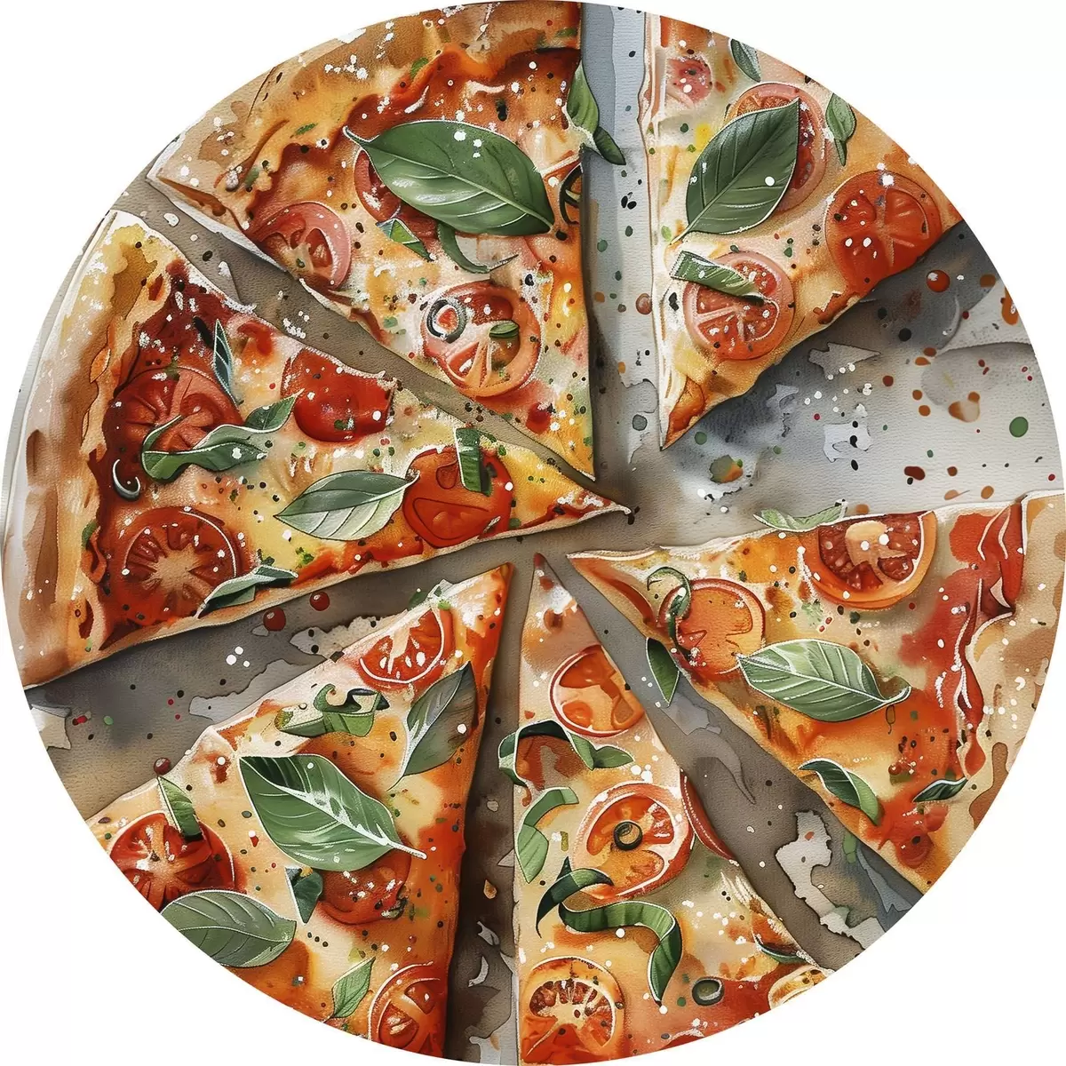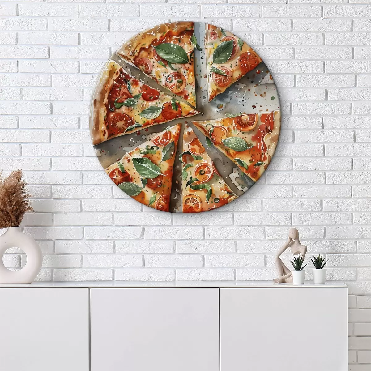 Apaļas gleznas Garda itāļu pica, akvareļu ēdienu māksla, margarita, tomāti r39703
