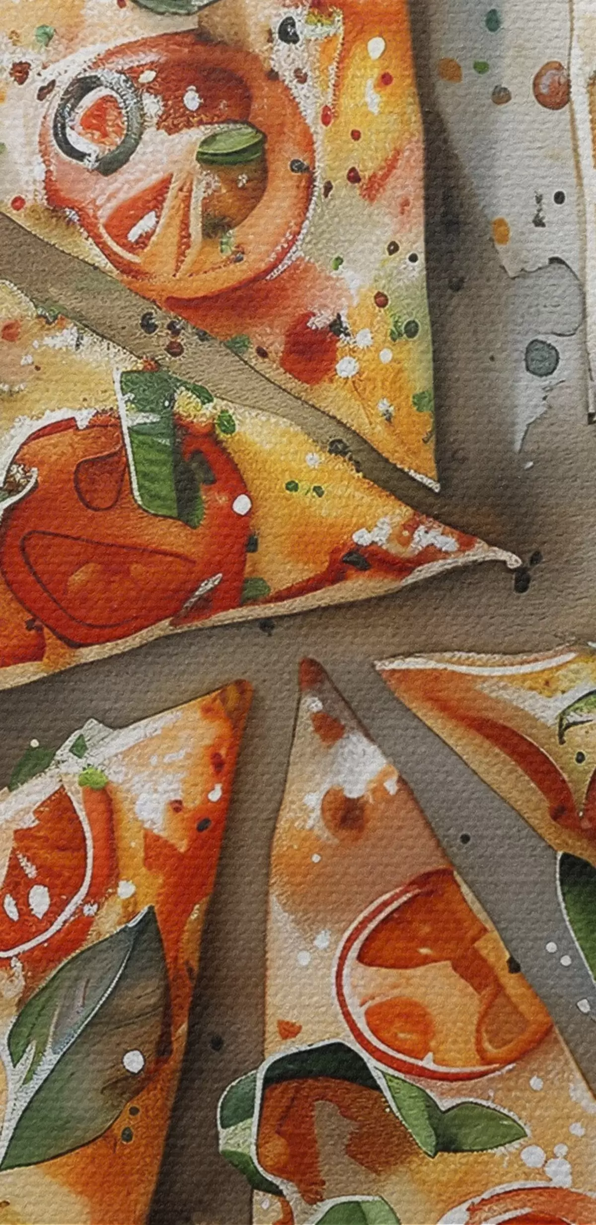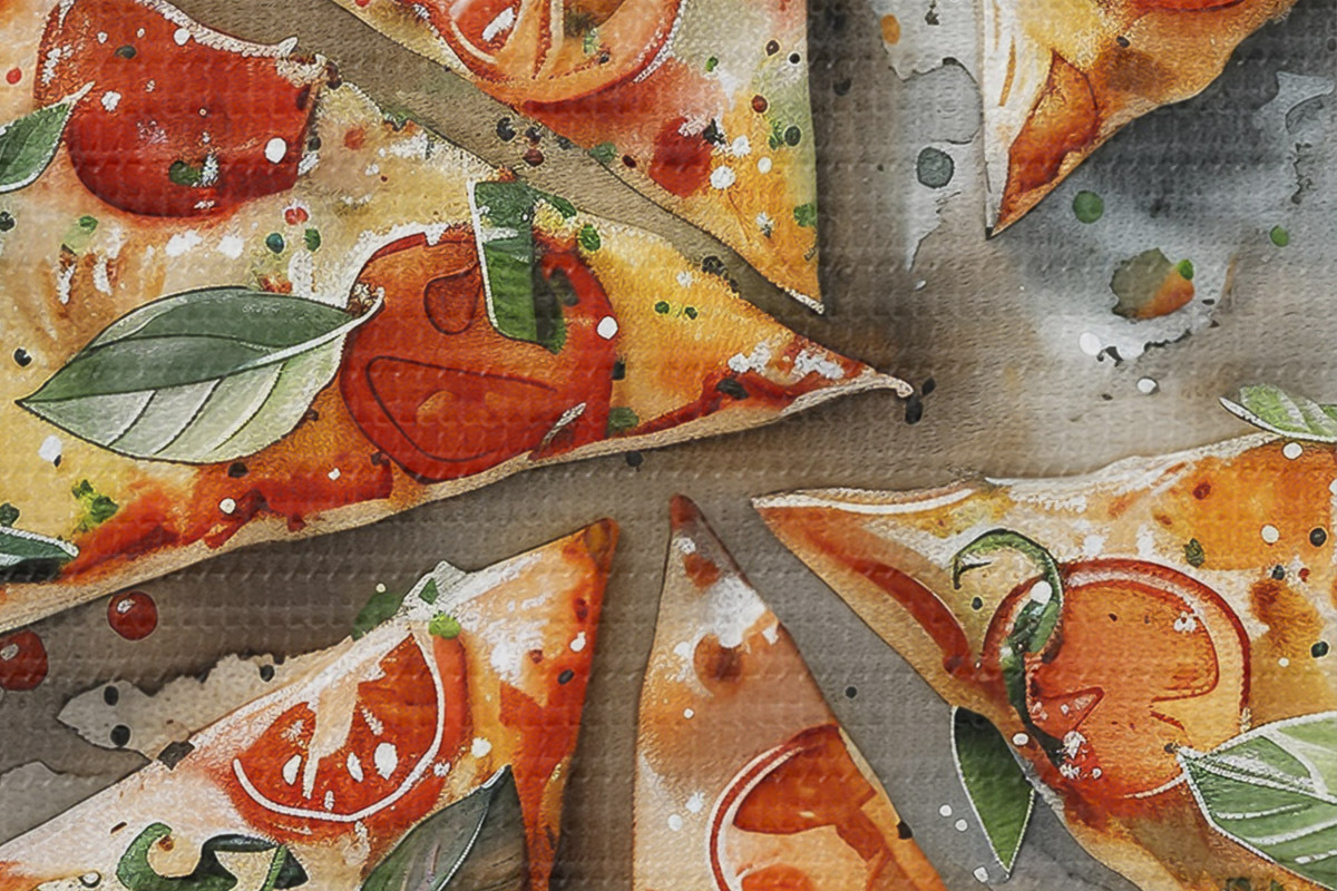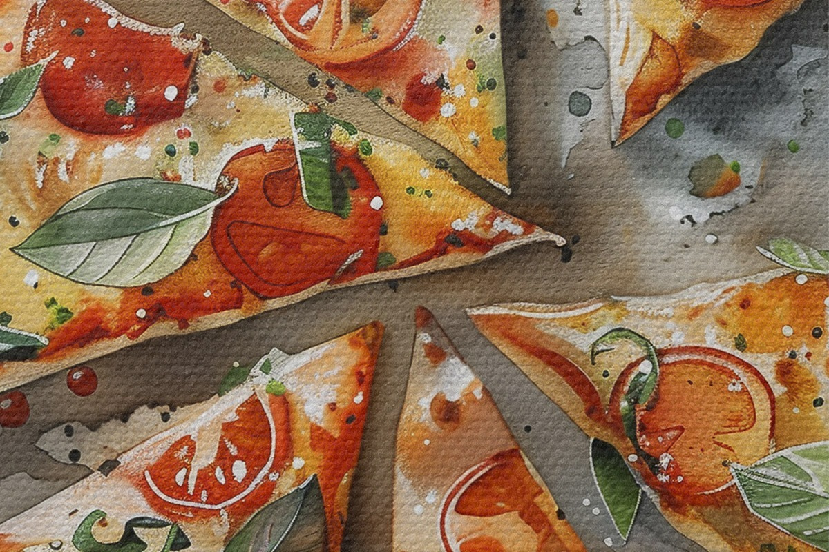 Attēls Garda itāļu pica, akvareļu ēdienu māksla, margarita, tomāti Nr r39703