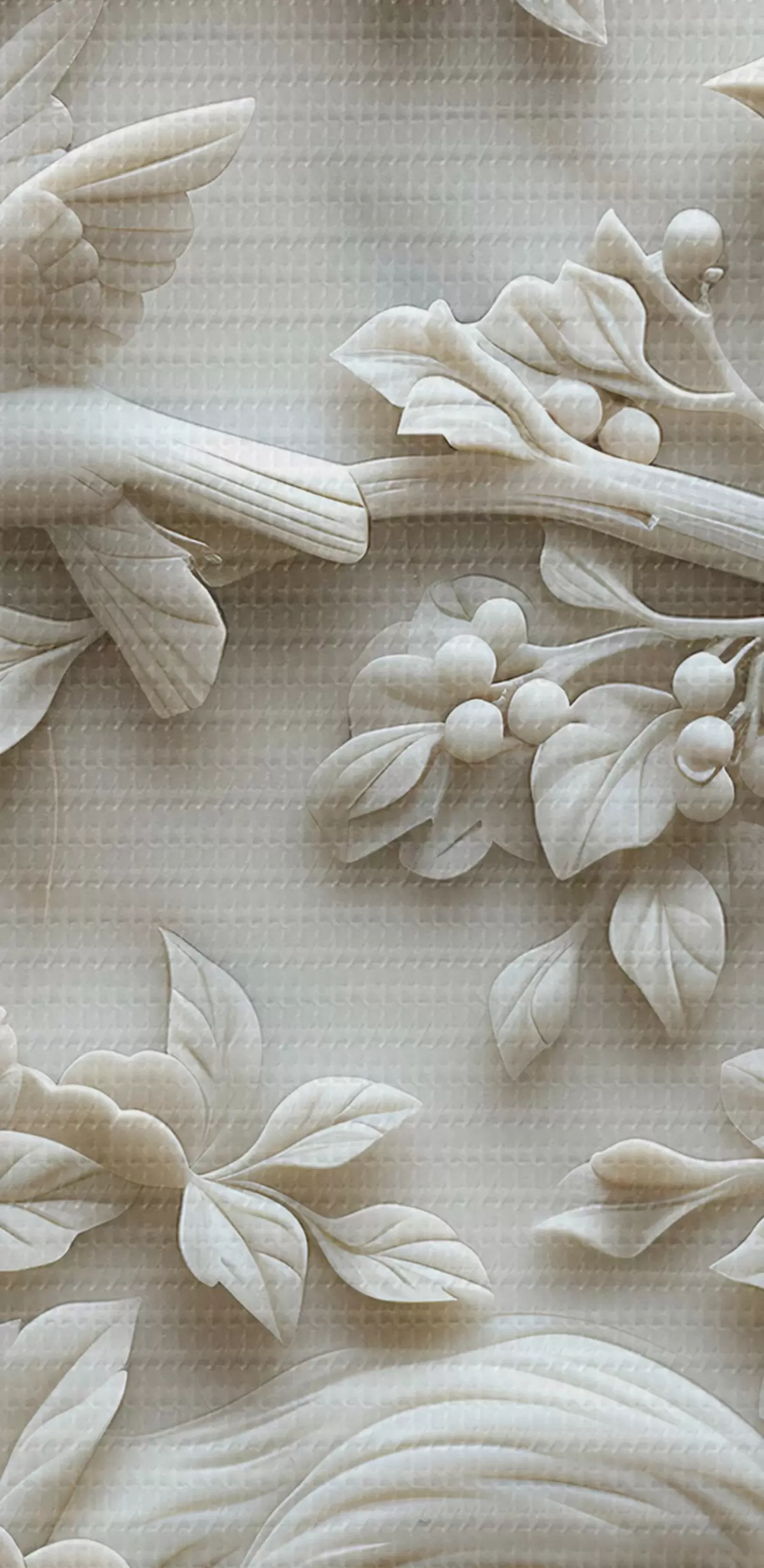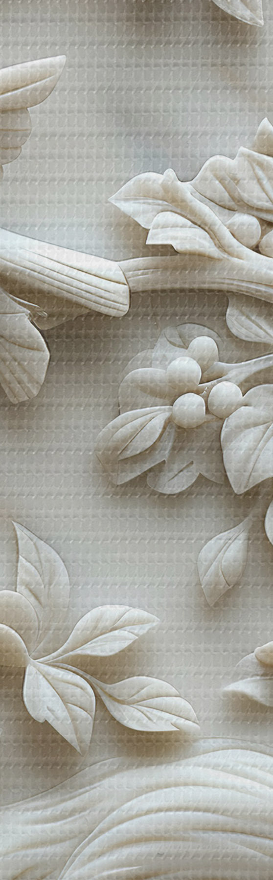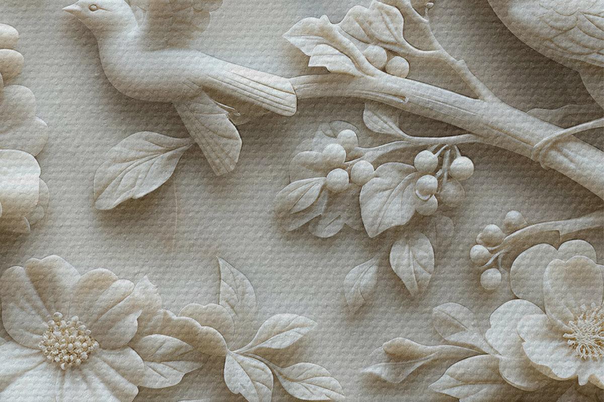 Attēls Balta marmora dārzs ar putnu un ziedu bareljefu Nr r39728