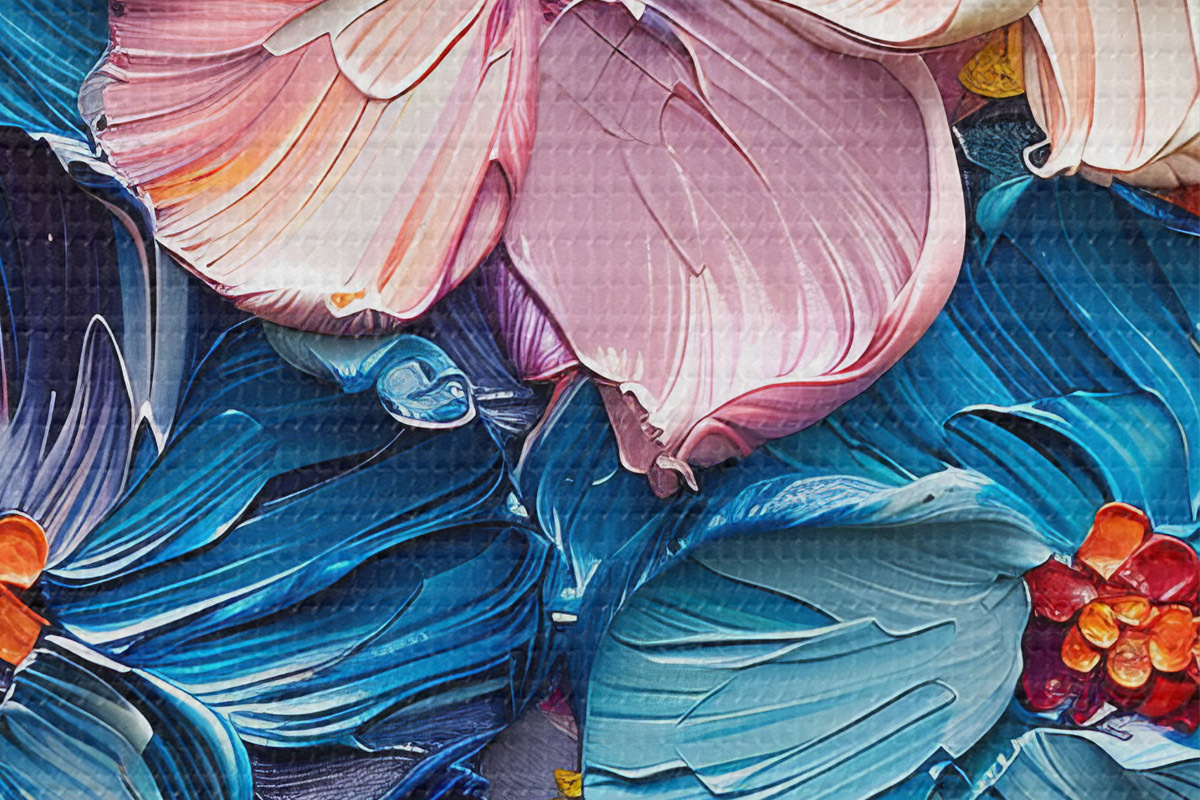 Smalkais diegu pinums uz šī audekla atgādina profesionālu mākslinieku audeklu virsmu.