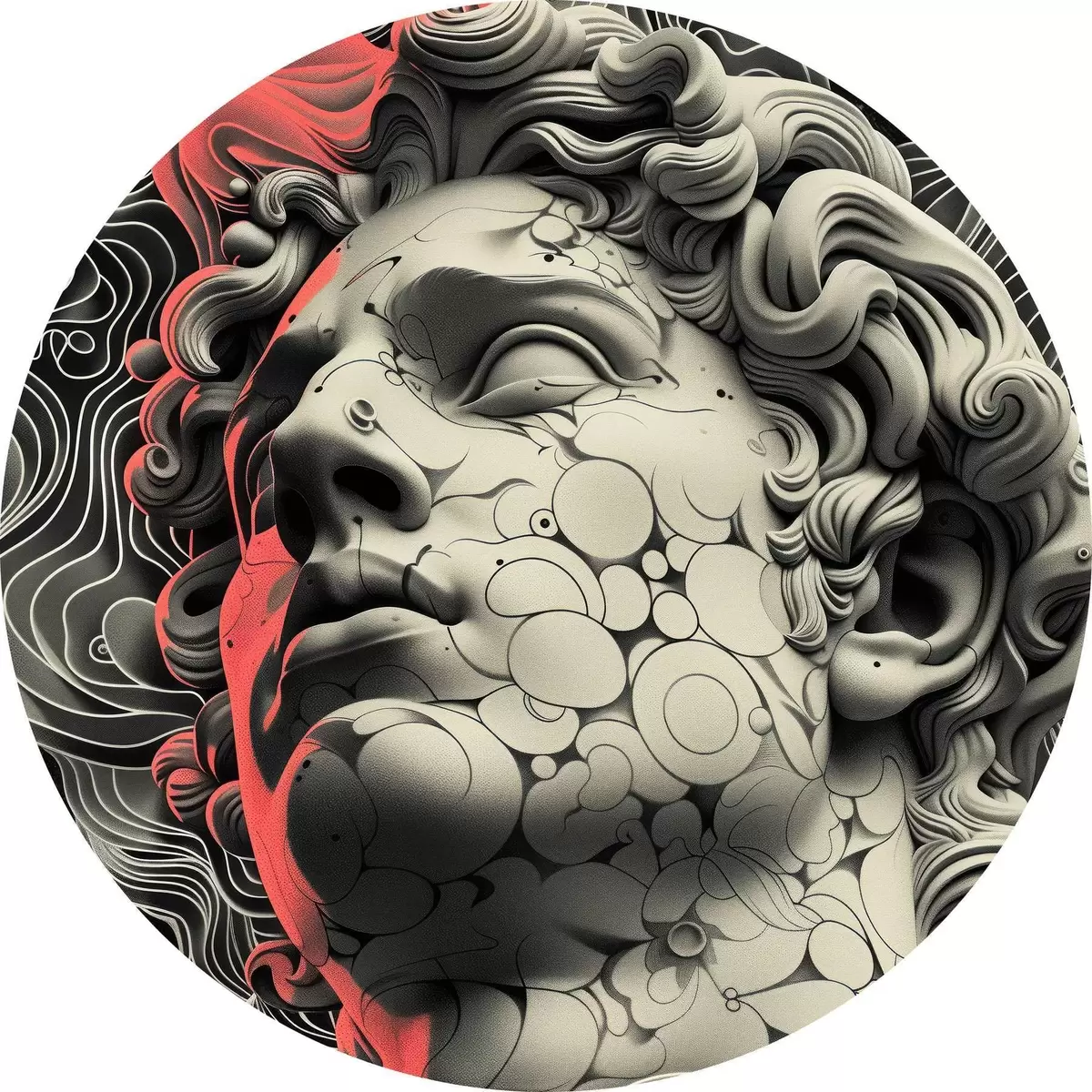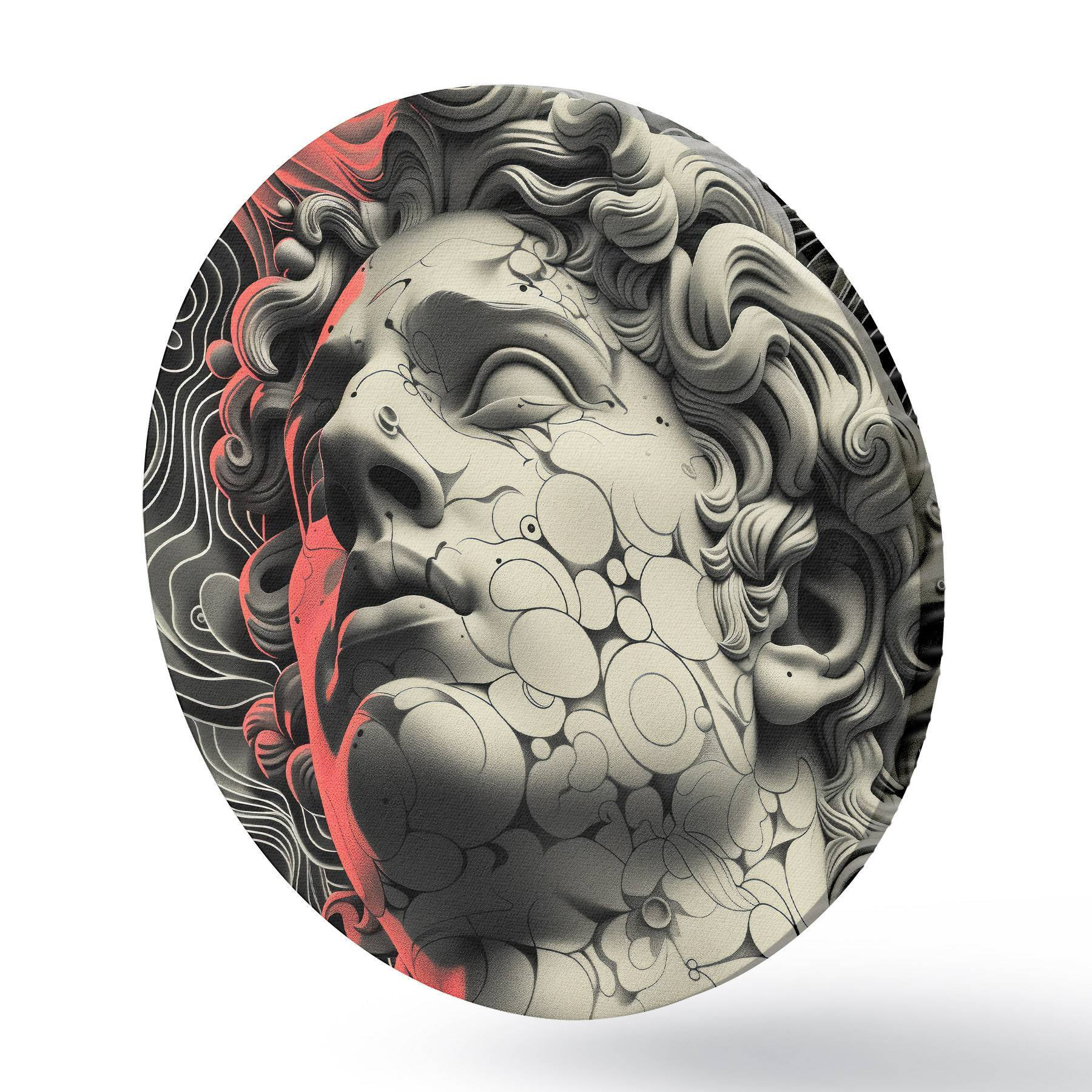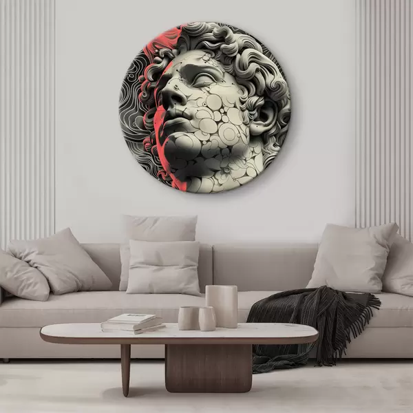 Apaļas gleznas Melnbalta lineāra grieķu dieva Apollona galvas ilustrācija popmākslas stilā r39763