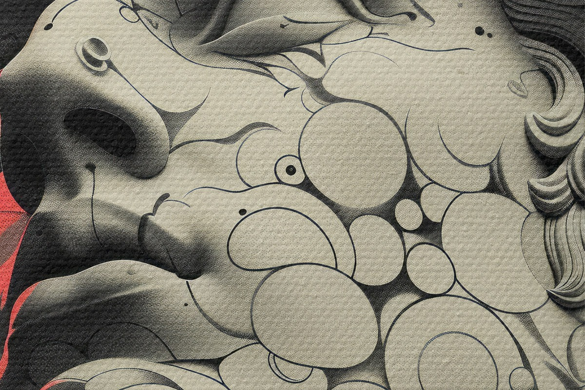 Attēls Melnbalta lineāra grieķu dieva Apollona galvas ilustrācija popmākslas stilā Nr r39763