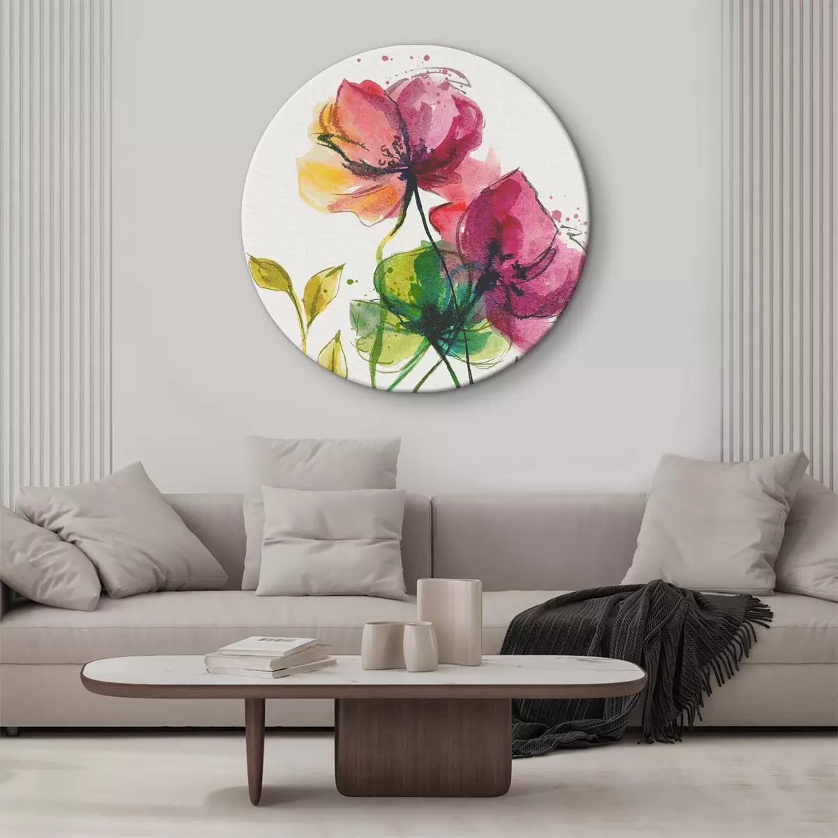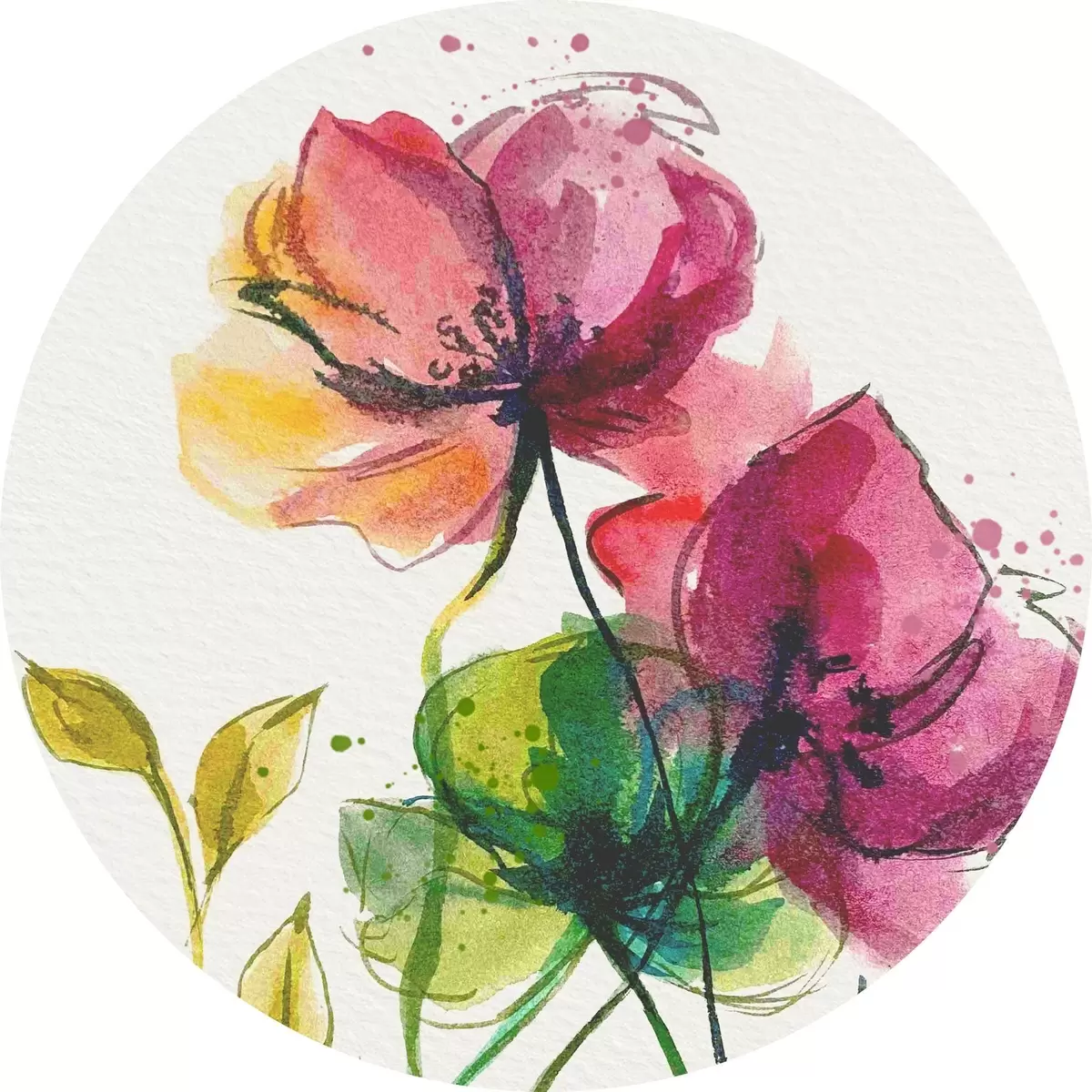 Apaļas gleznas Skaisti akvareļu ziedi r39768
