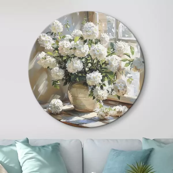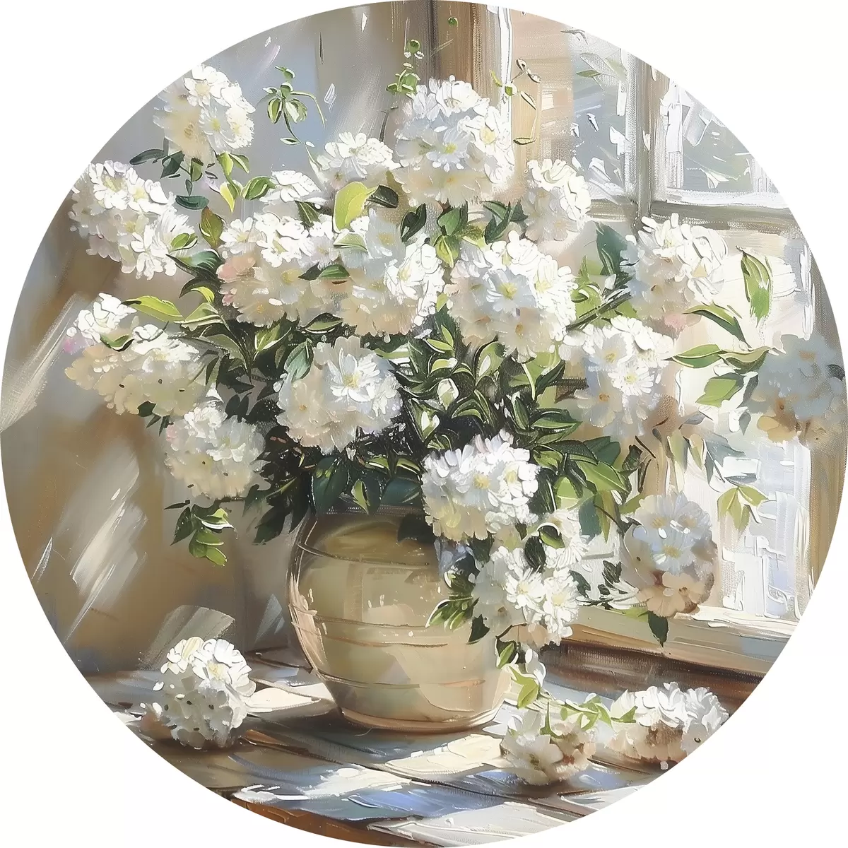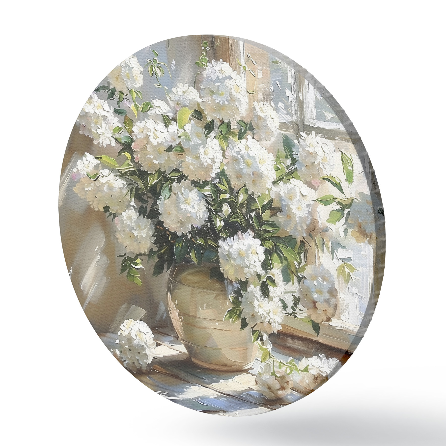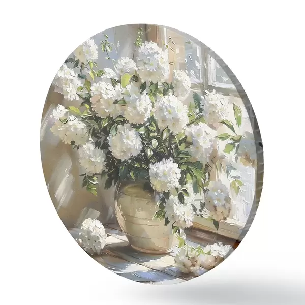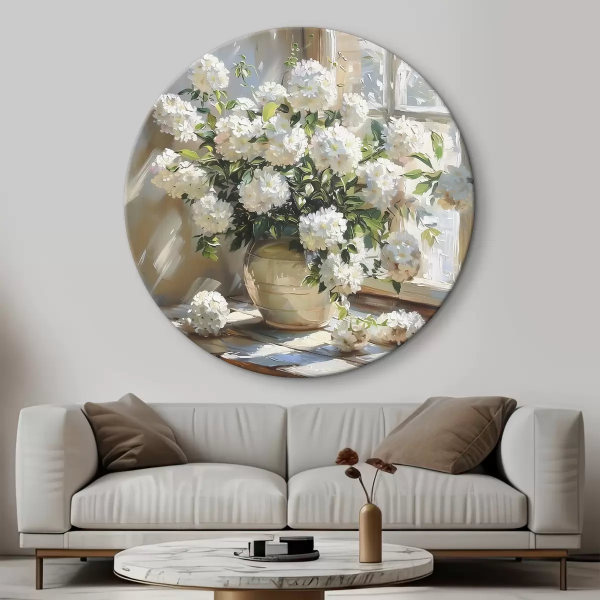 Apaļas gleznas Uz palodzes stāv skaists pušķis r39779