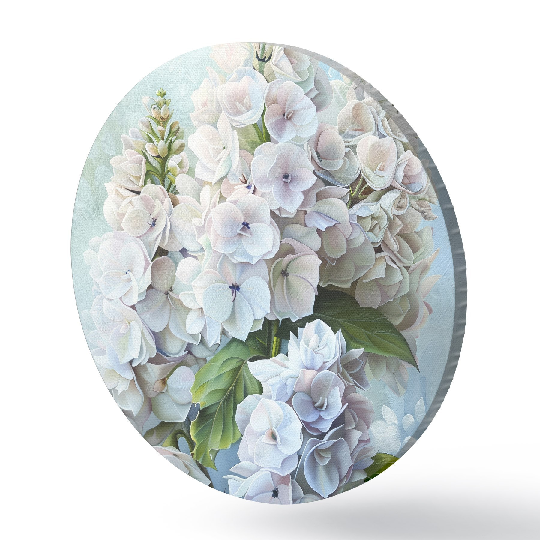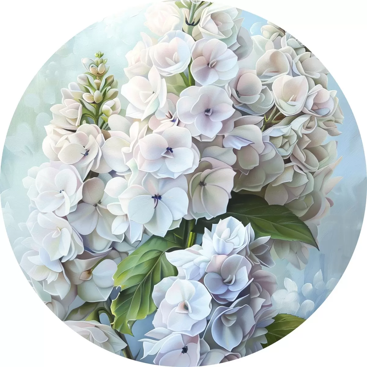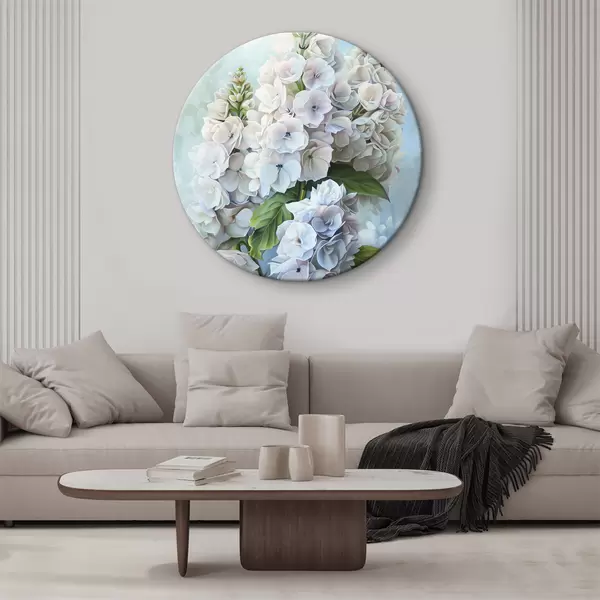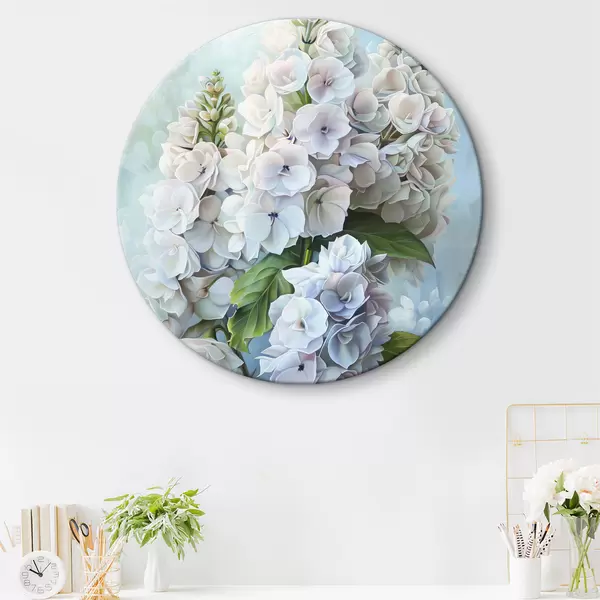 Apaļas gleznas Violeta hortenzijas zieds, maigas dabas krāsas, akvareļa zīmējums r39783