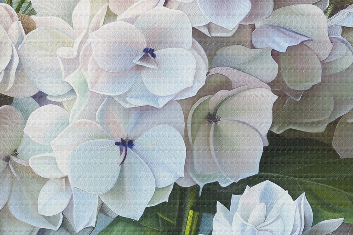 Smalkais diegu pinums uz šī audekla atgādina profesionālu mākslinieku audeklu virsmu.