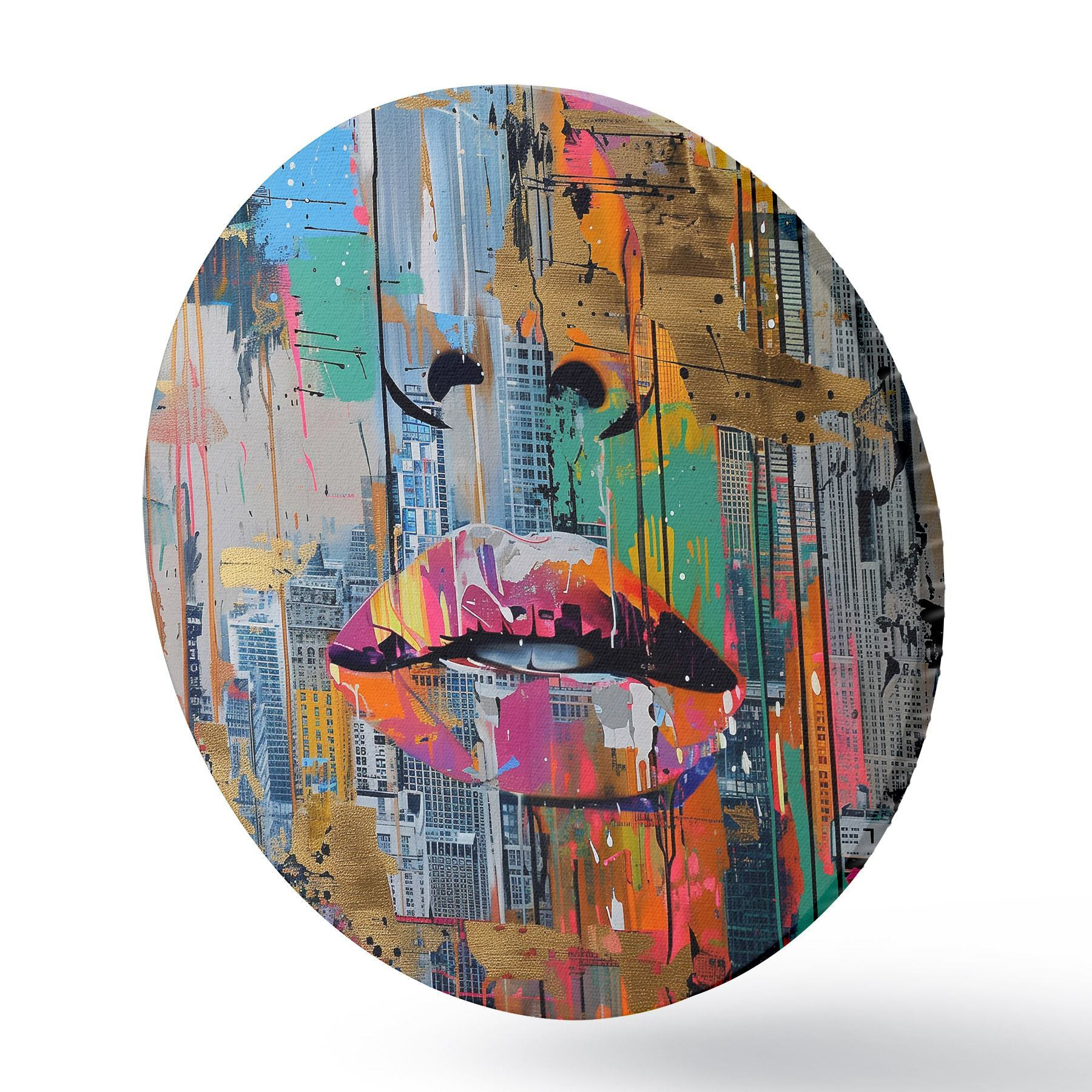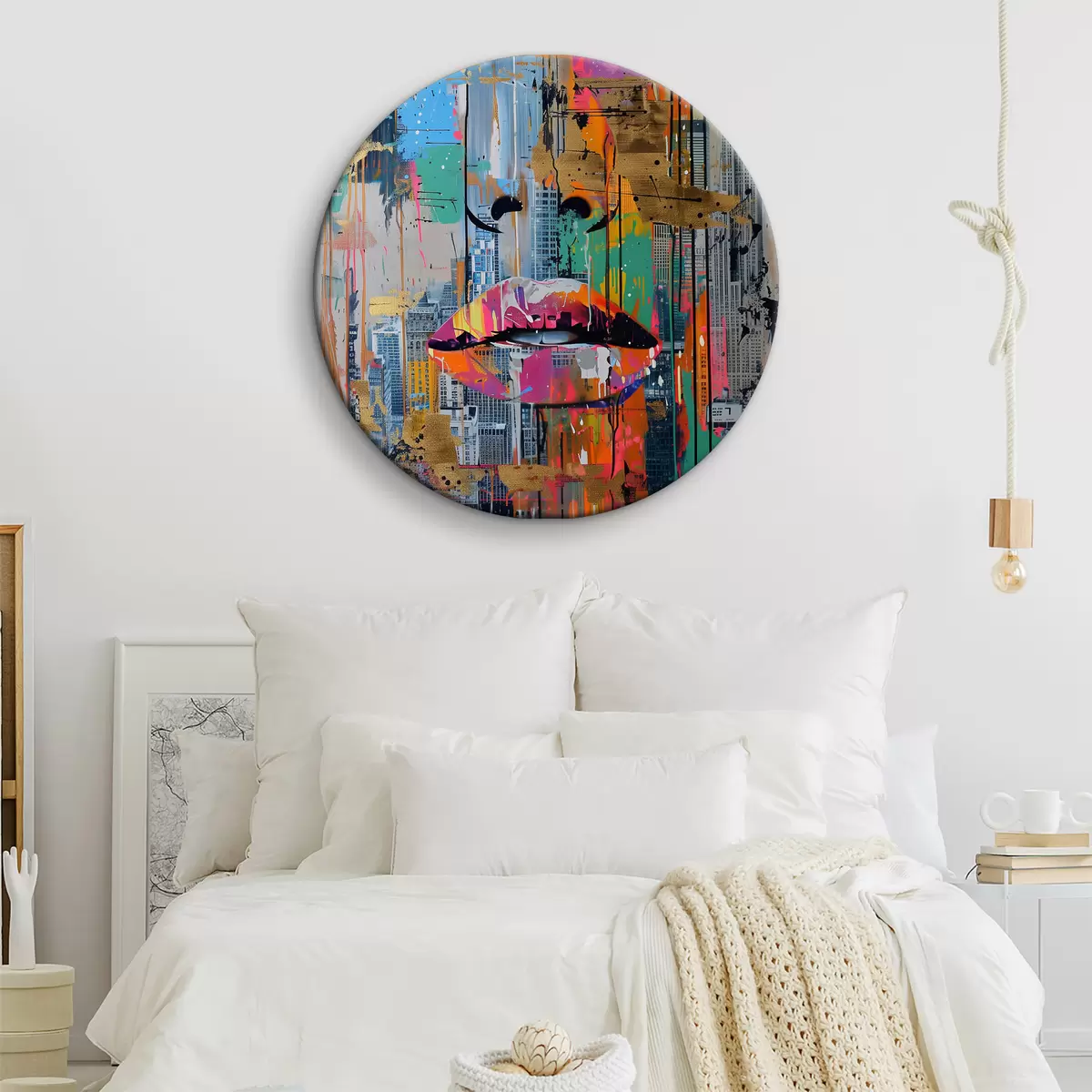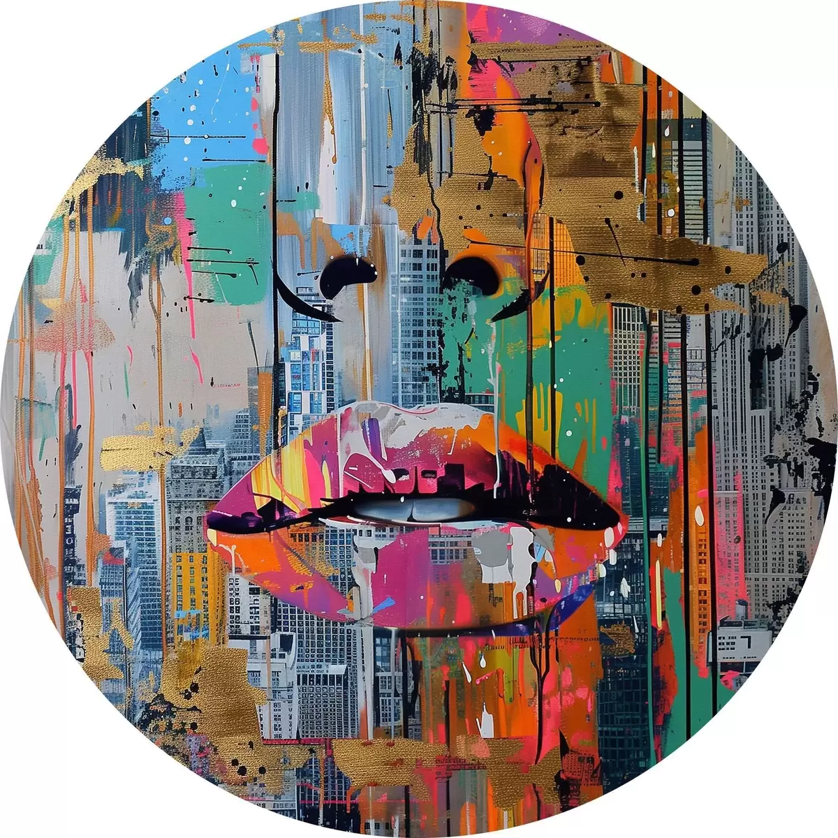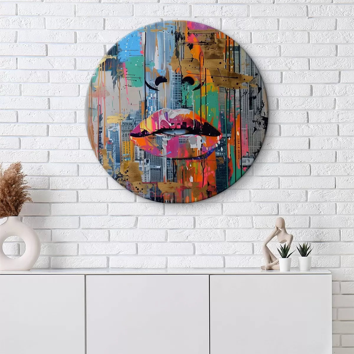 Apaļas gleznas Zilas acis un skats uz pilsētu r39800