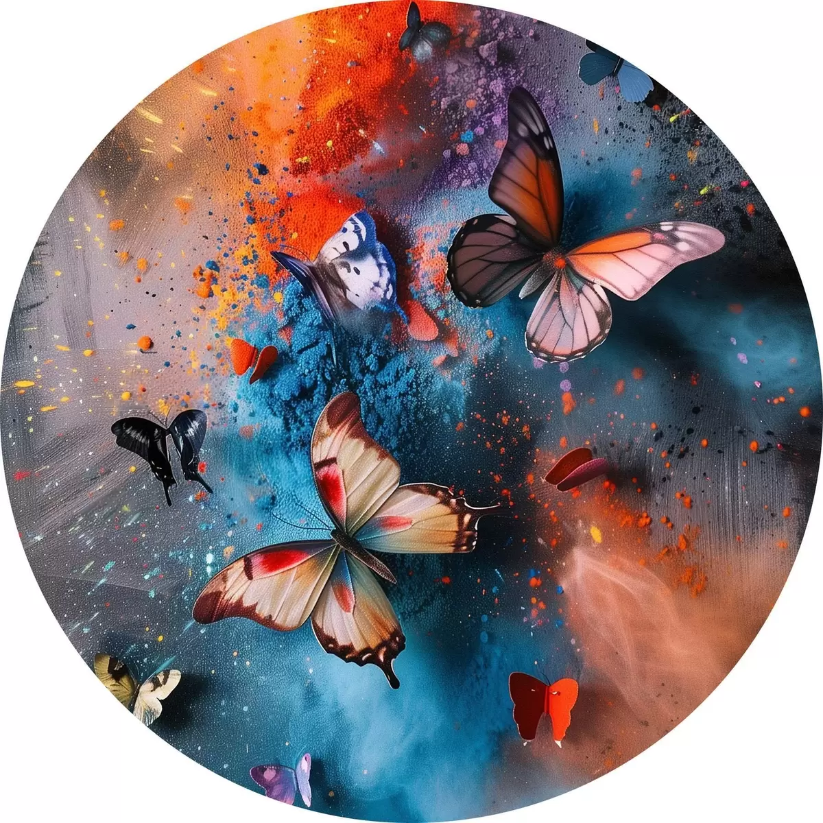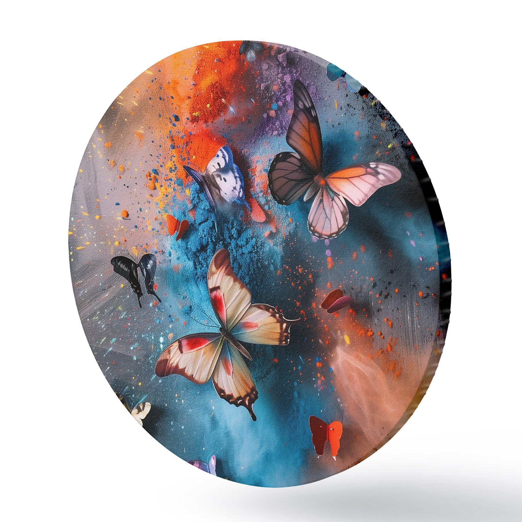 Apaļas gleznas Tauriņi uz krāsas šļakatu fona r39803