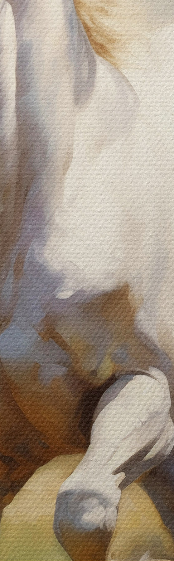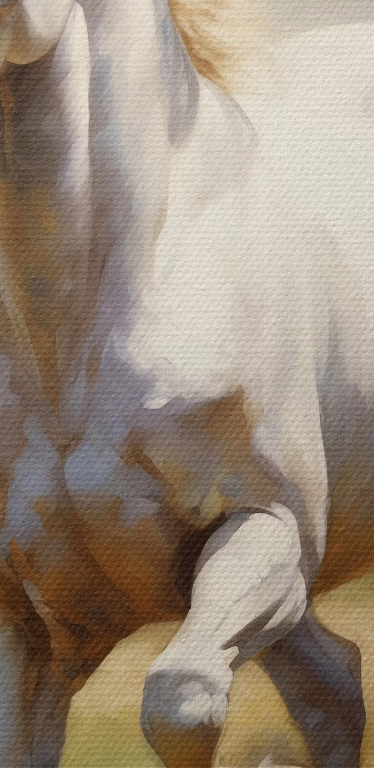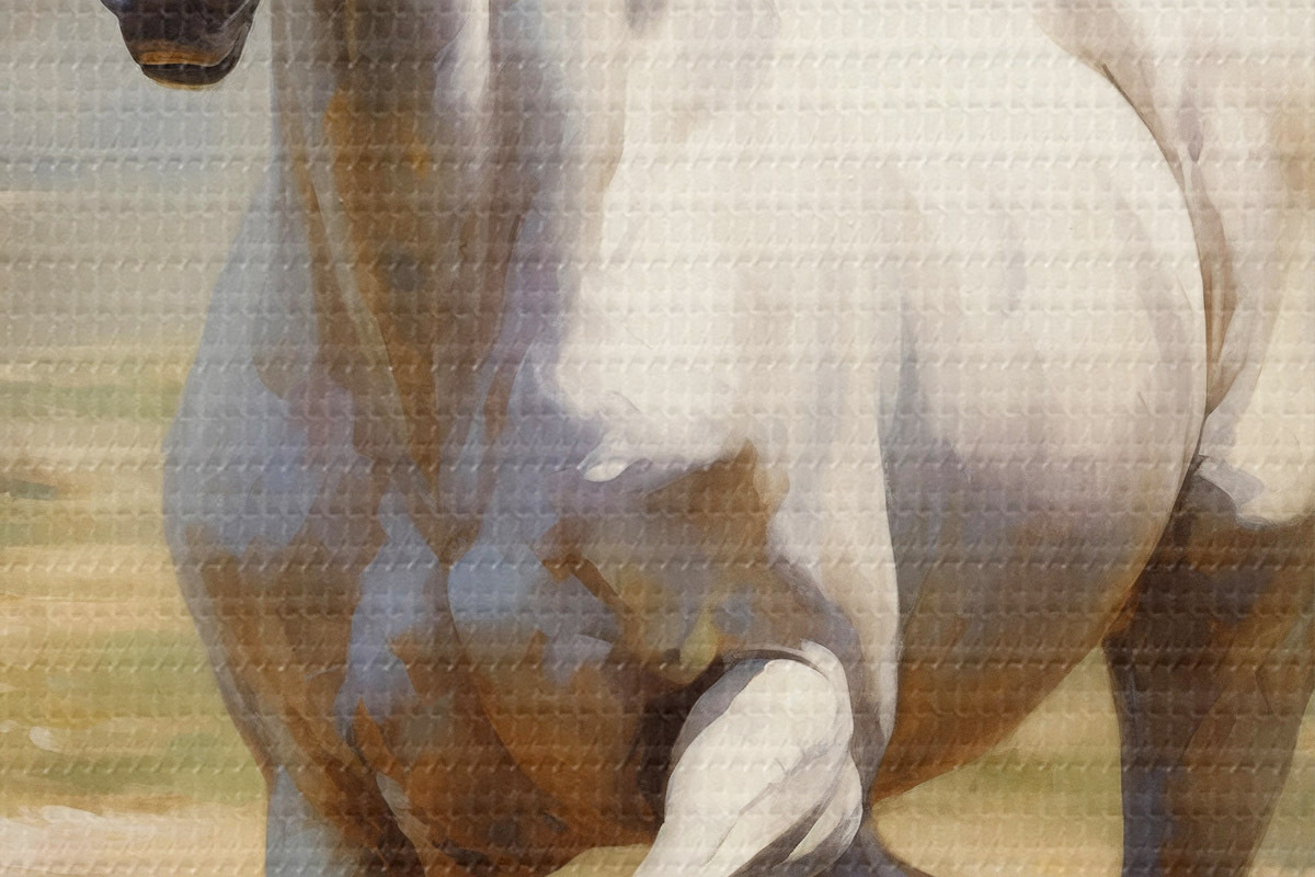 Attēls Balts zirgs, kas auļo pa pļavu, eļļas glezna Nr r39818