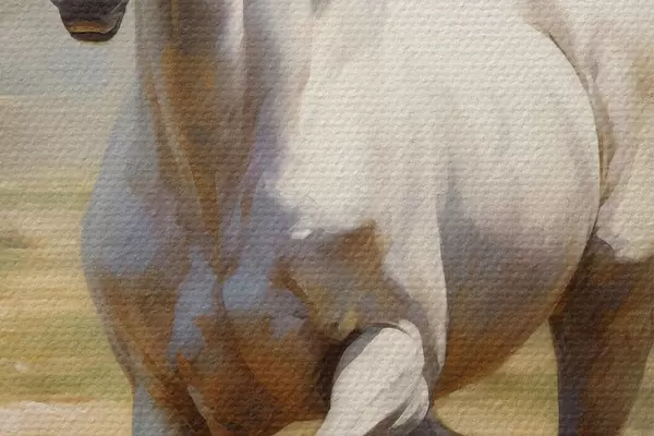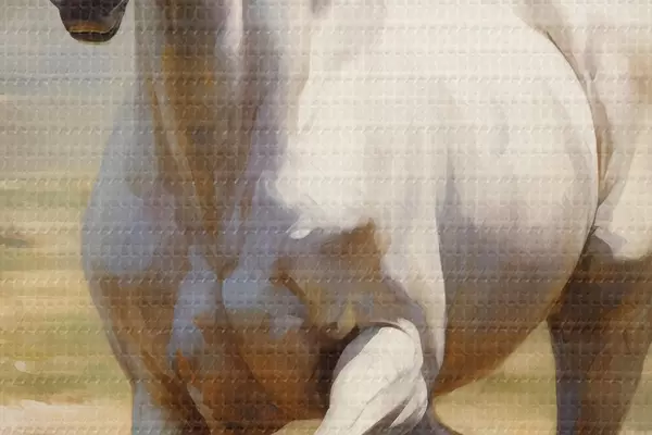 Attēls Balts zirgs, kas auļo pa pļavu, eļļas glezna Nr r39818