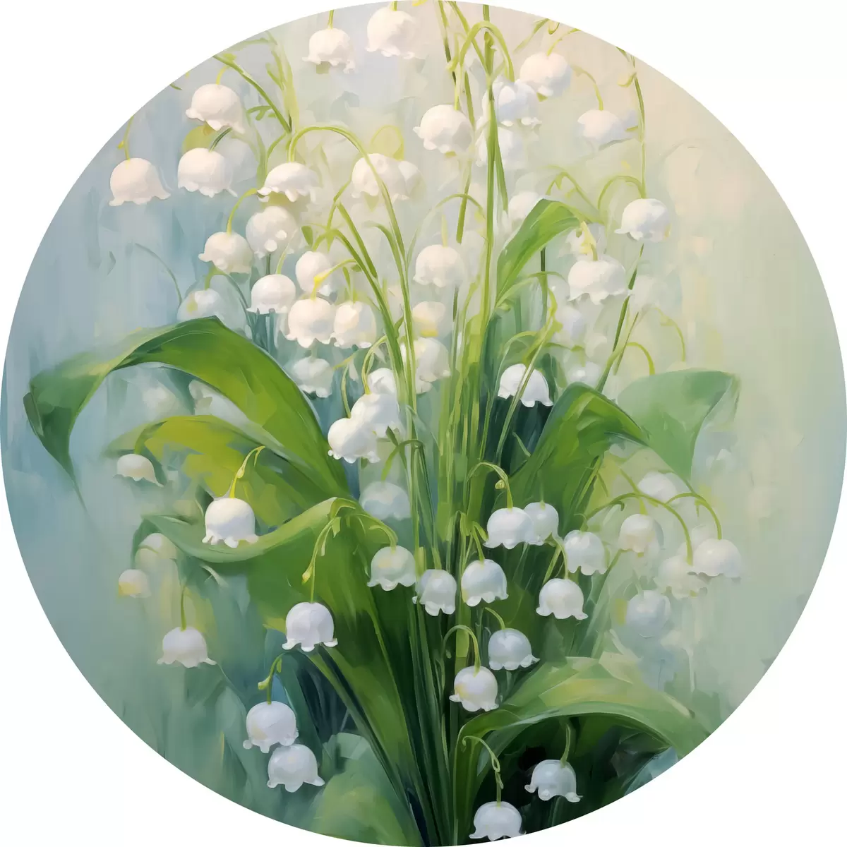 Apaļas gleznas Baltās maijpuķītes eļļas glezna r39827