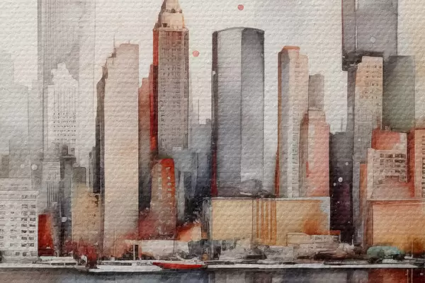 Attēls Ņujorkas pilsētas skats, ēku silueti, akvarelis Nr r39828