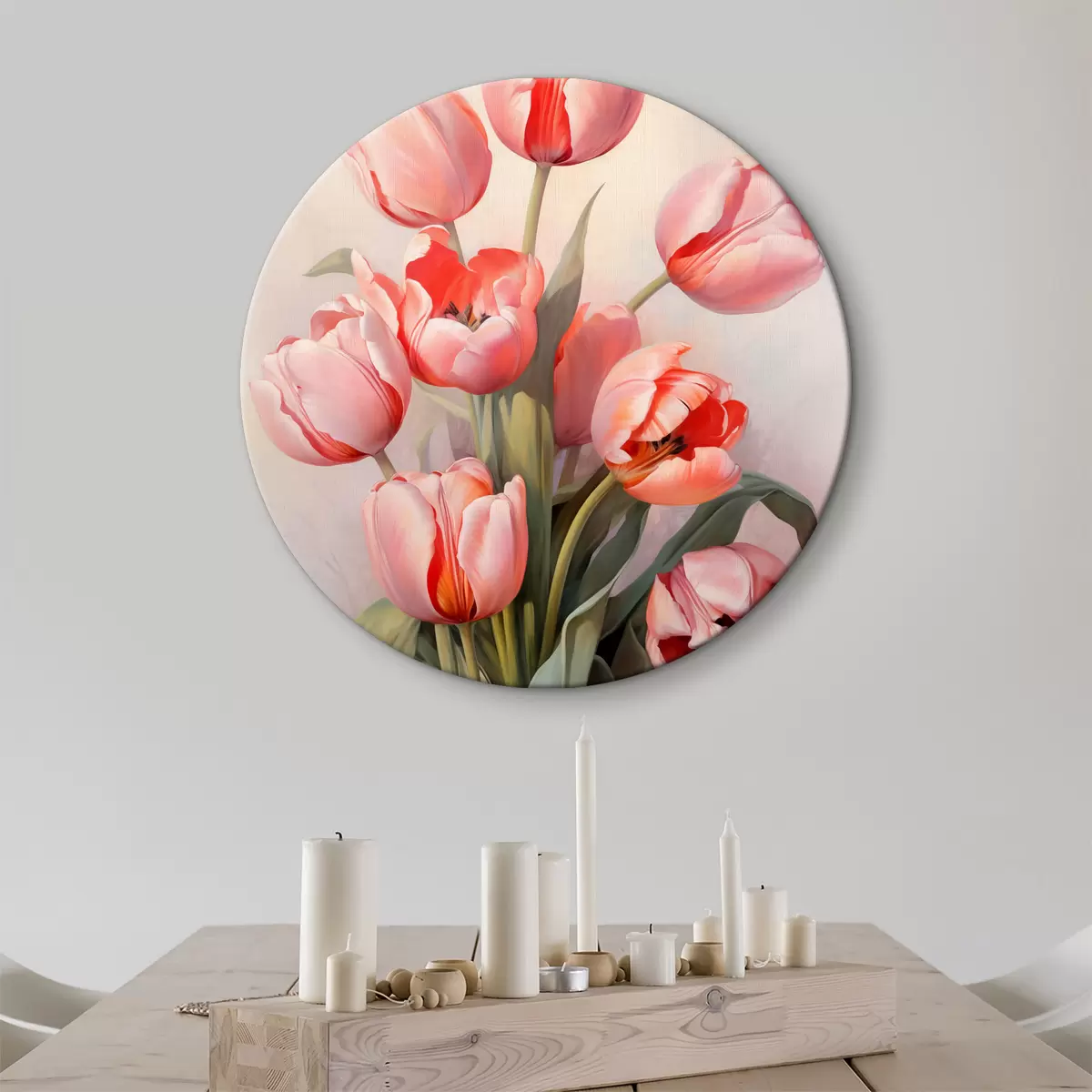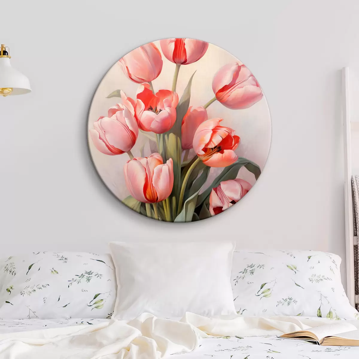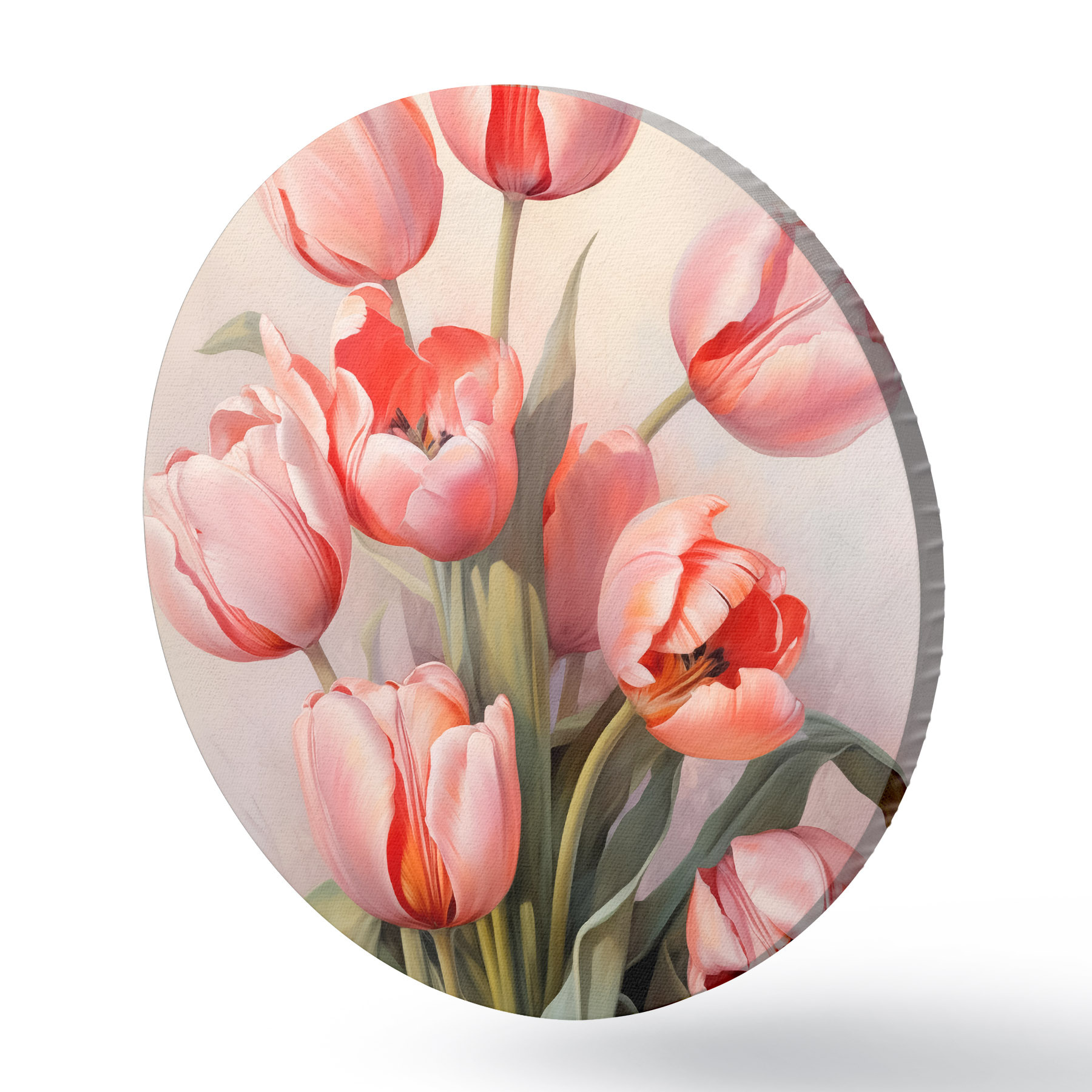 Apaļas gleznas Rozā sarkanas tulpes uz vieglas eļļas gleznas r39832