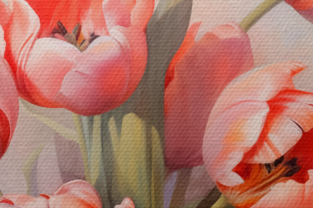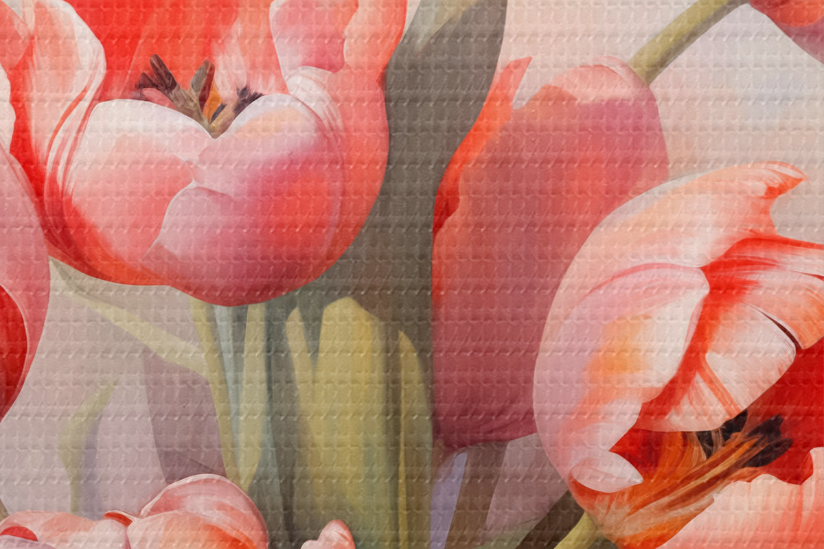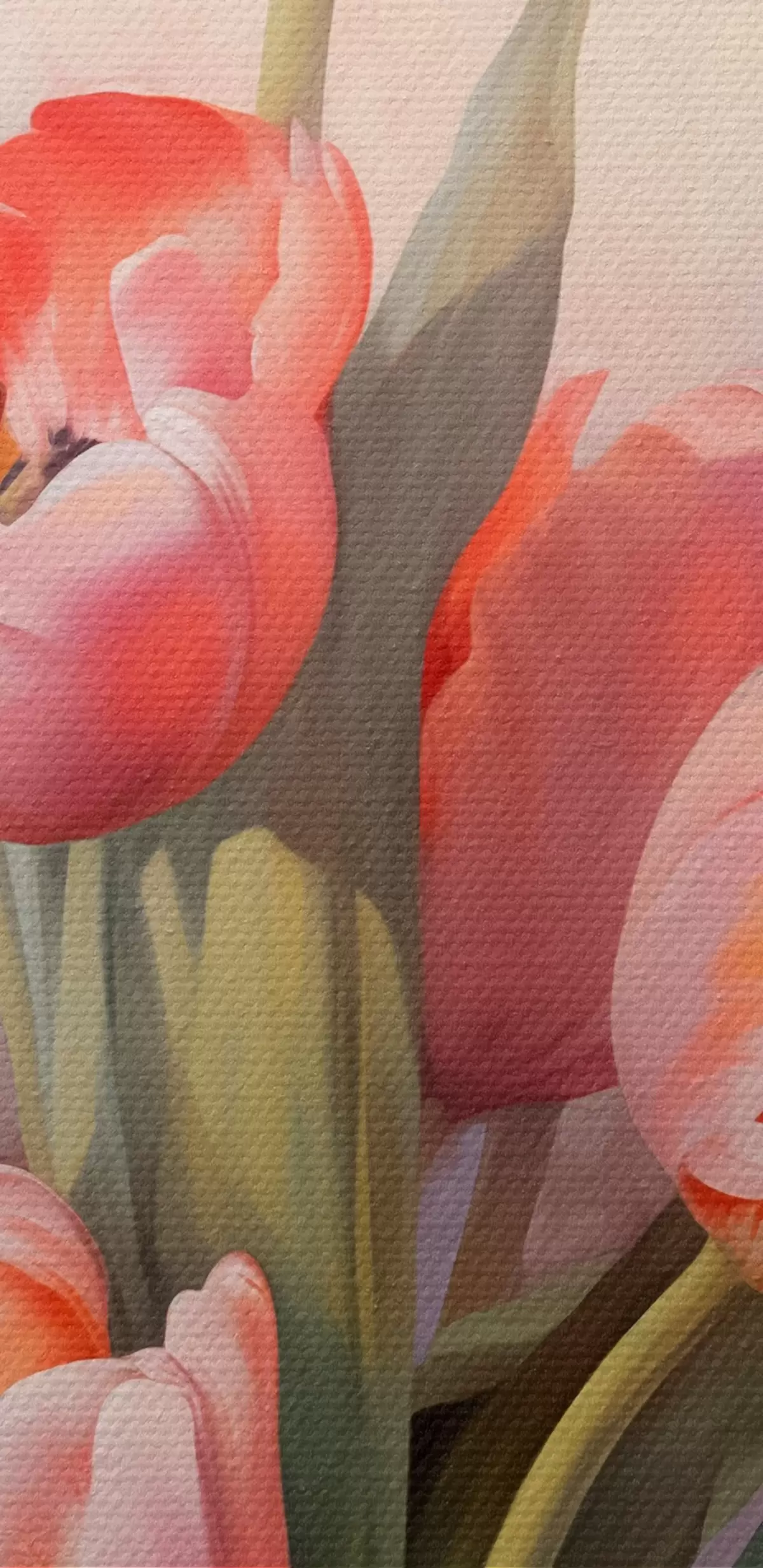 Attēls Rozā sarkanas tulpes uz vieglas eļļas gleznas Nr r39832