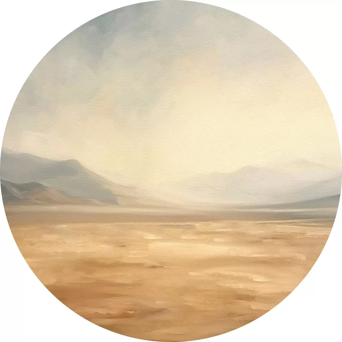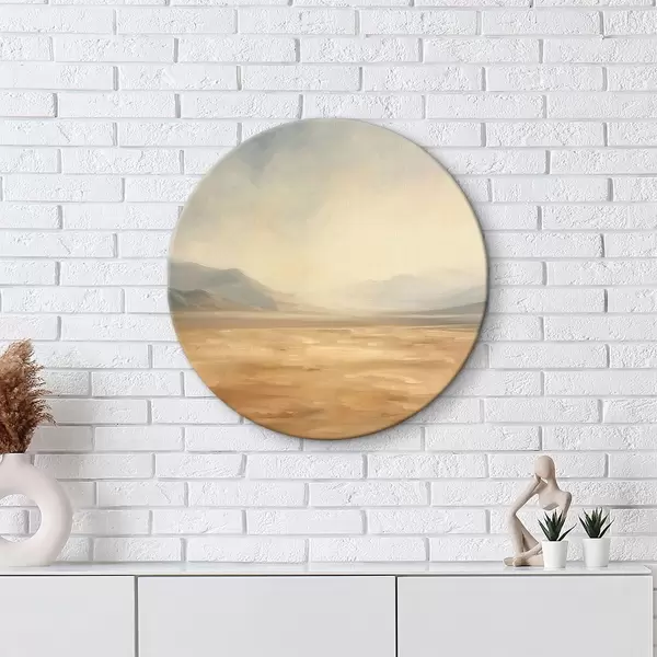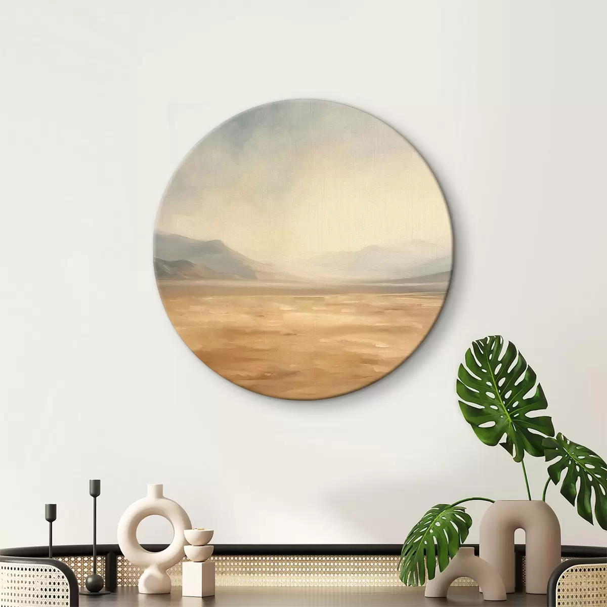 Apaļas gleznas Tuksnesis ar kalniem fonā mierīga ainava r39835