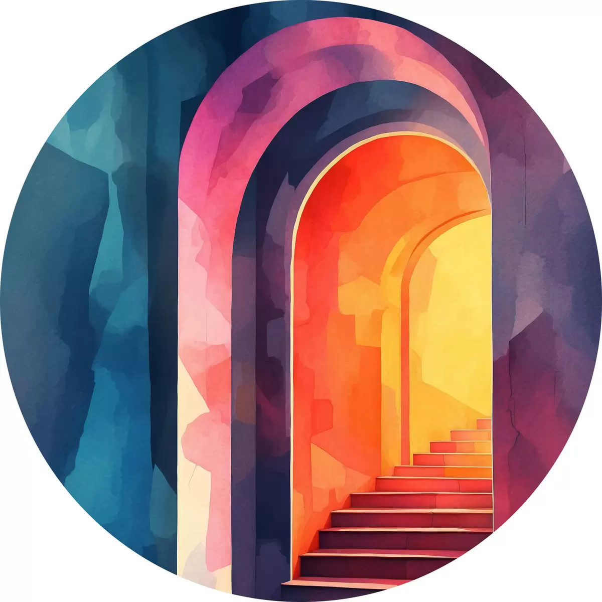 Apaļas gleznas Daudzlīmeņu ieeja akvarelī r39863