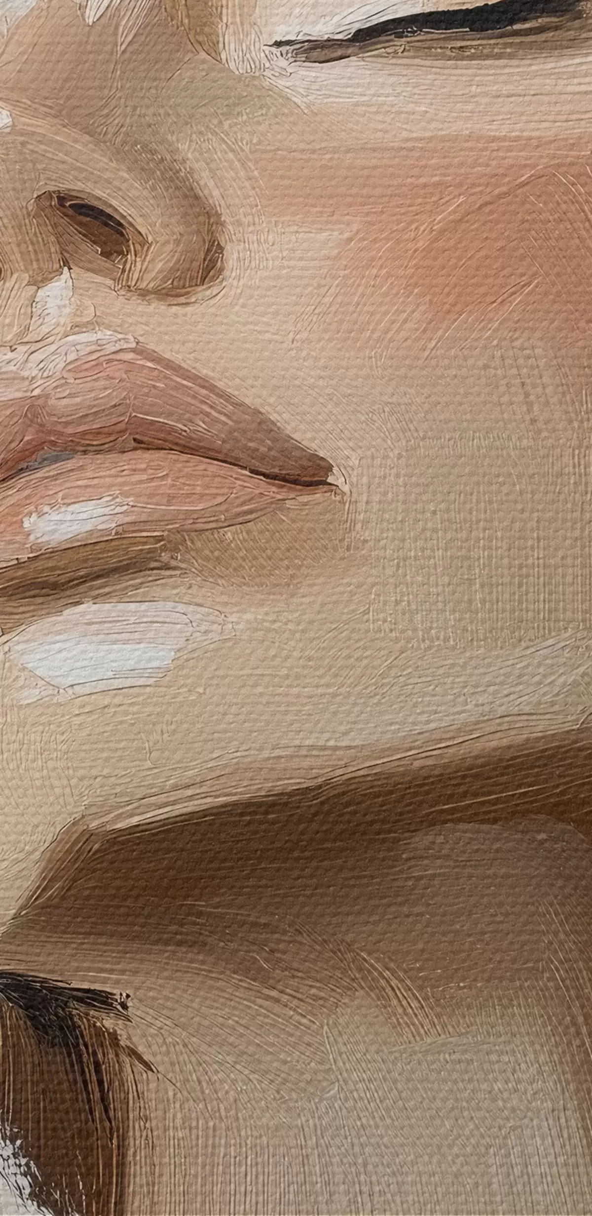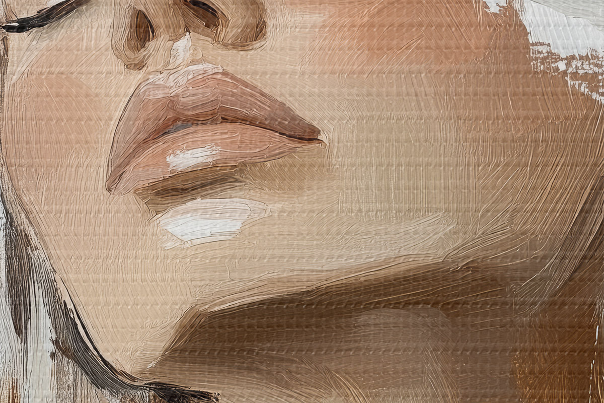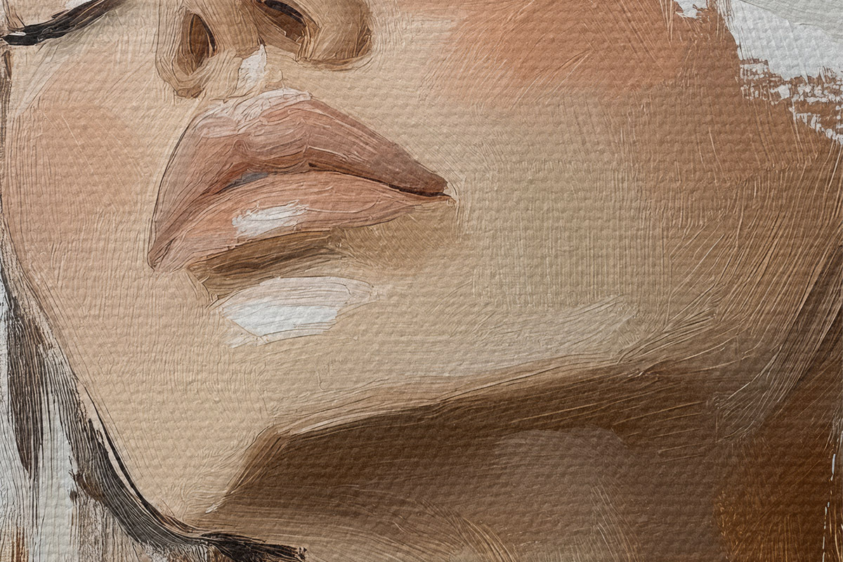 Smalkais diegu pinums uz šī audekla atgādina profesionālu mākslinieku audeklu virsmu.