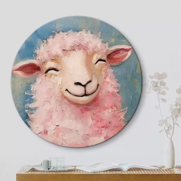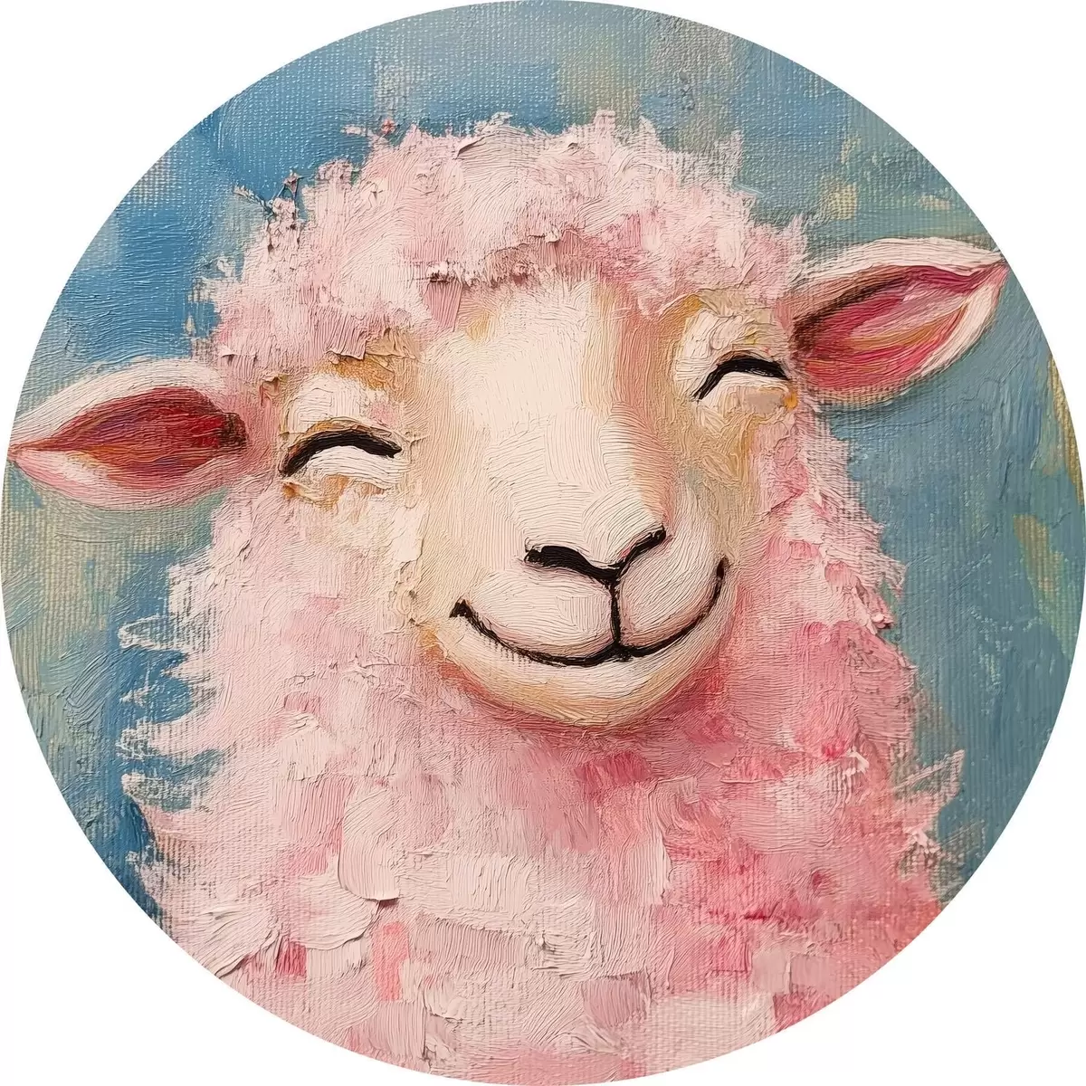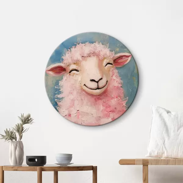 Apaļas gleznas Jautrs auns ar rozā vilnu r39911