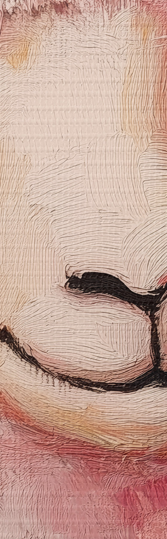 Smalkais diegu pinums uz šī audekla atgādina profesionālu mākslinieku audeklu virsmu.